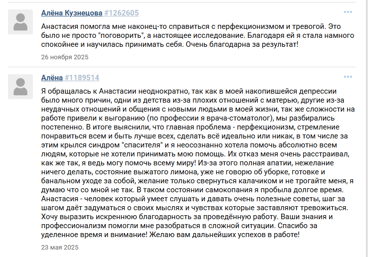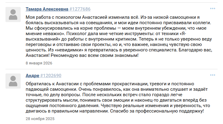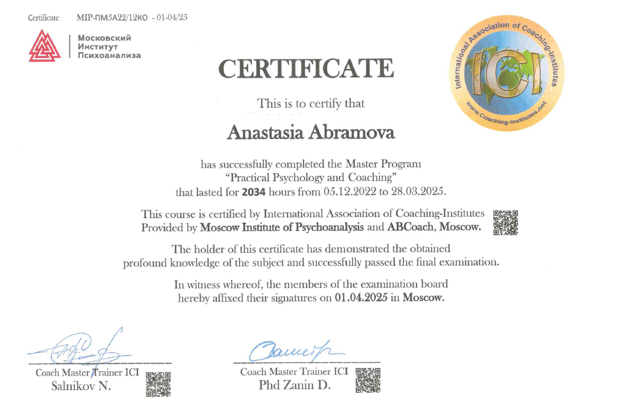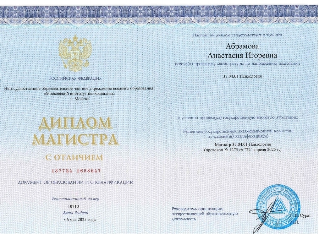 Приветствую вас на моей странице! Меня зовут Анастасия Абрамова, и я психолог, который действительно любит свою работу.