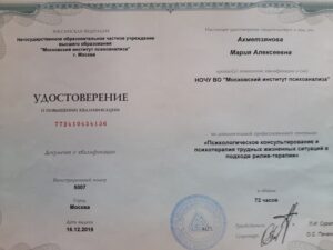 Спасибо Марии за консультации, она мне очень помогла. Мария создала доверительную атмосферу, в которой я смогла открыться и поделиться самыми глубокими чувствами и страхами. После того как я с ней поговорила мне теперь легче. Я благодарна Марии за ее профессионализм, терпение и понимание. Однозначно рекомендую.