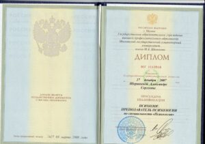 Подтверждённые дипломы по психологии:диплом о высшем образовании