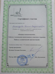 Имею широкий круг профессиональных интересов, постоянно повышаю квалификацию, прохожу личную терапию и супервизию. Работаю как со взрослыми, так и с подростками и детьми. Очно и онлайн.