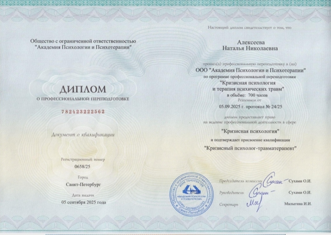 Всем доброго времени суток! Меня зовут Наталья. Я практикующий кризисный психолог — травматерапевт. Работаю со взрослыми людьми индивидуально, онлайн (видео, аудио, переписка). В своей работе я использую когнитивно — поведенческую психотерапию и гештальт подход, различные методы работы с психической травмой. К консультированию подхожу с большим интересом и творчеством.