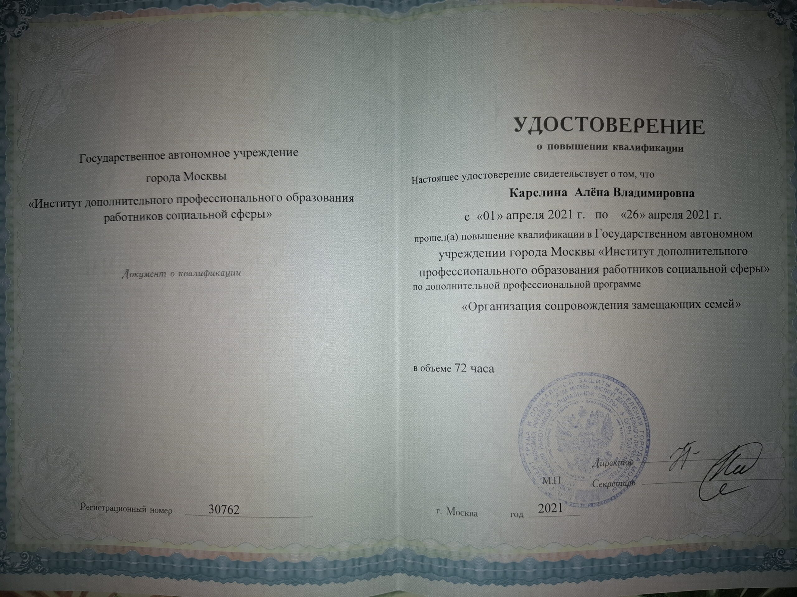 Параллельно с частной практикой, 6 лет работала с приемными семьями на всех этапах: от диагностики кандидатов и участия в подборе ребёнка до решения проблем в уже сложившихся семьях. Весь полученный мной опыт и знания теперь помогает моим клиентам из приемных и кровных семей.