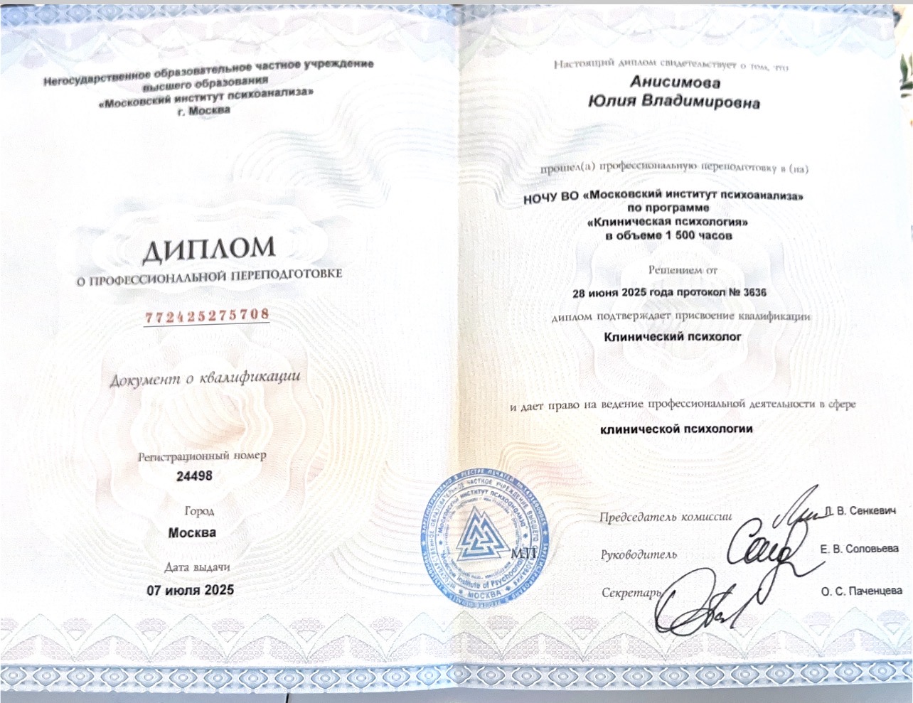 Здравствуйте! Я клинический психолог и специалист по работе с психологической травмой, работаю в методе КПТ. Моя цель в том, что помочь вам как можно скорее избавиться от тревоги, страхов, стресса, депрессивных состояний и вернуть гармонию и уверенность в себе.