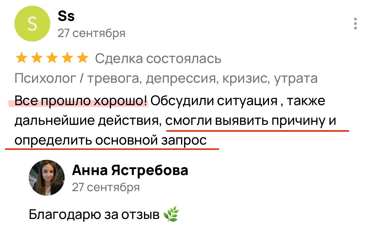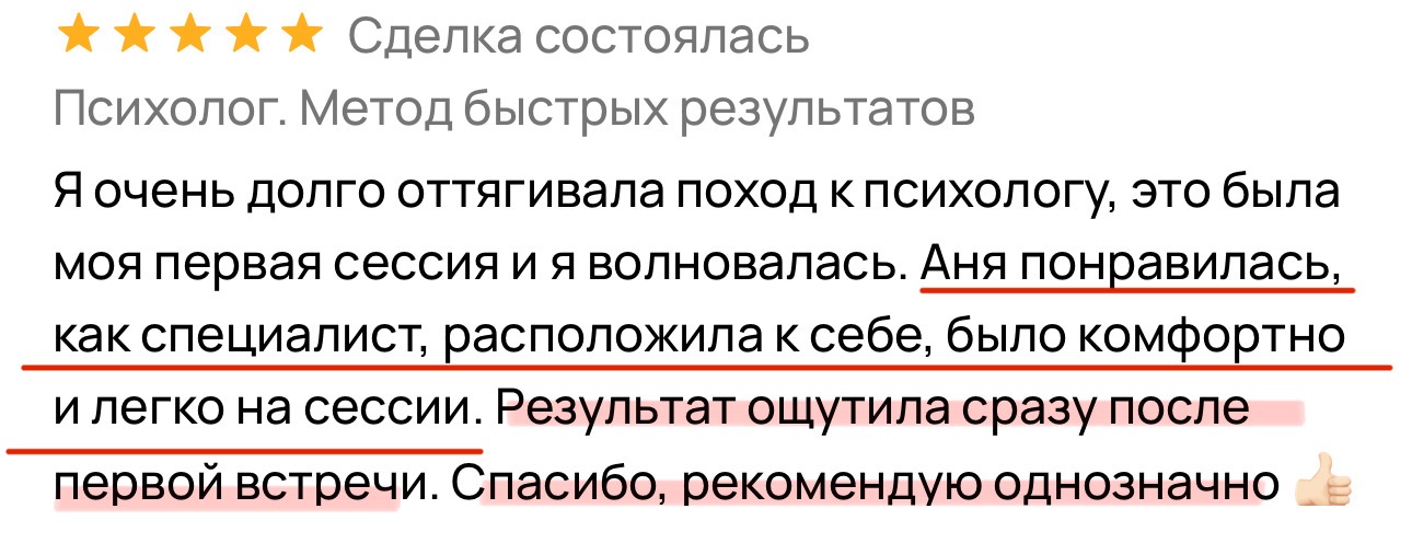 Обращалась к Анне, понравилось.Помимо профессиональных навыков, обладает такими качествами как человечность, доброта, что тоже очень важно.