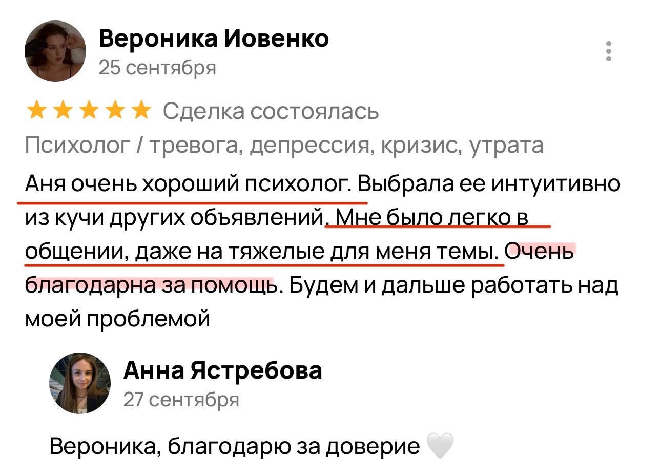 - Не работаю с парами, семьями, людьми младше 18 лет, людьми с химическими зависимостями и вопросами половой (гендерной) идентификации