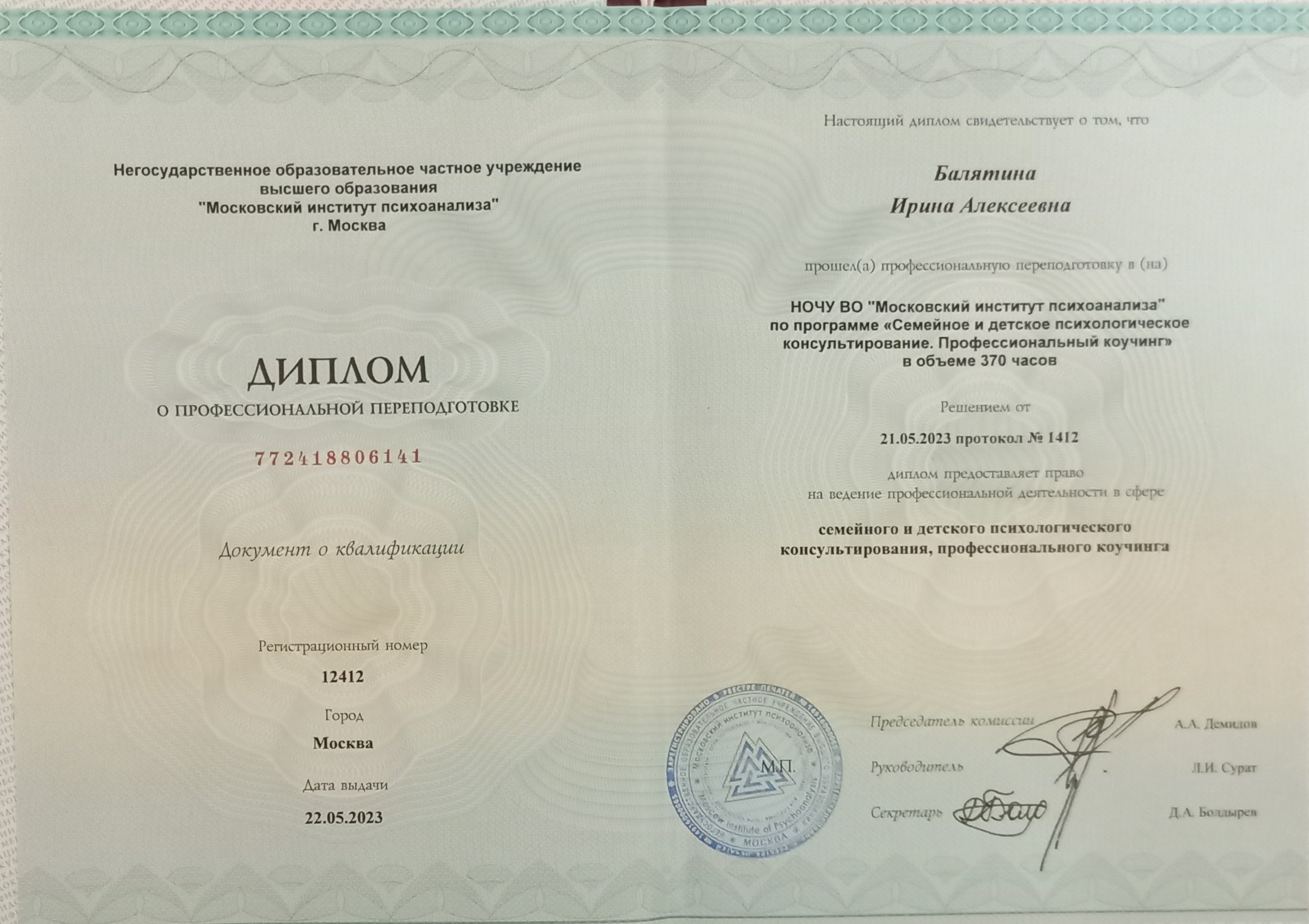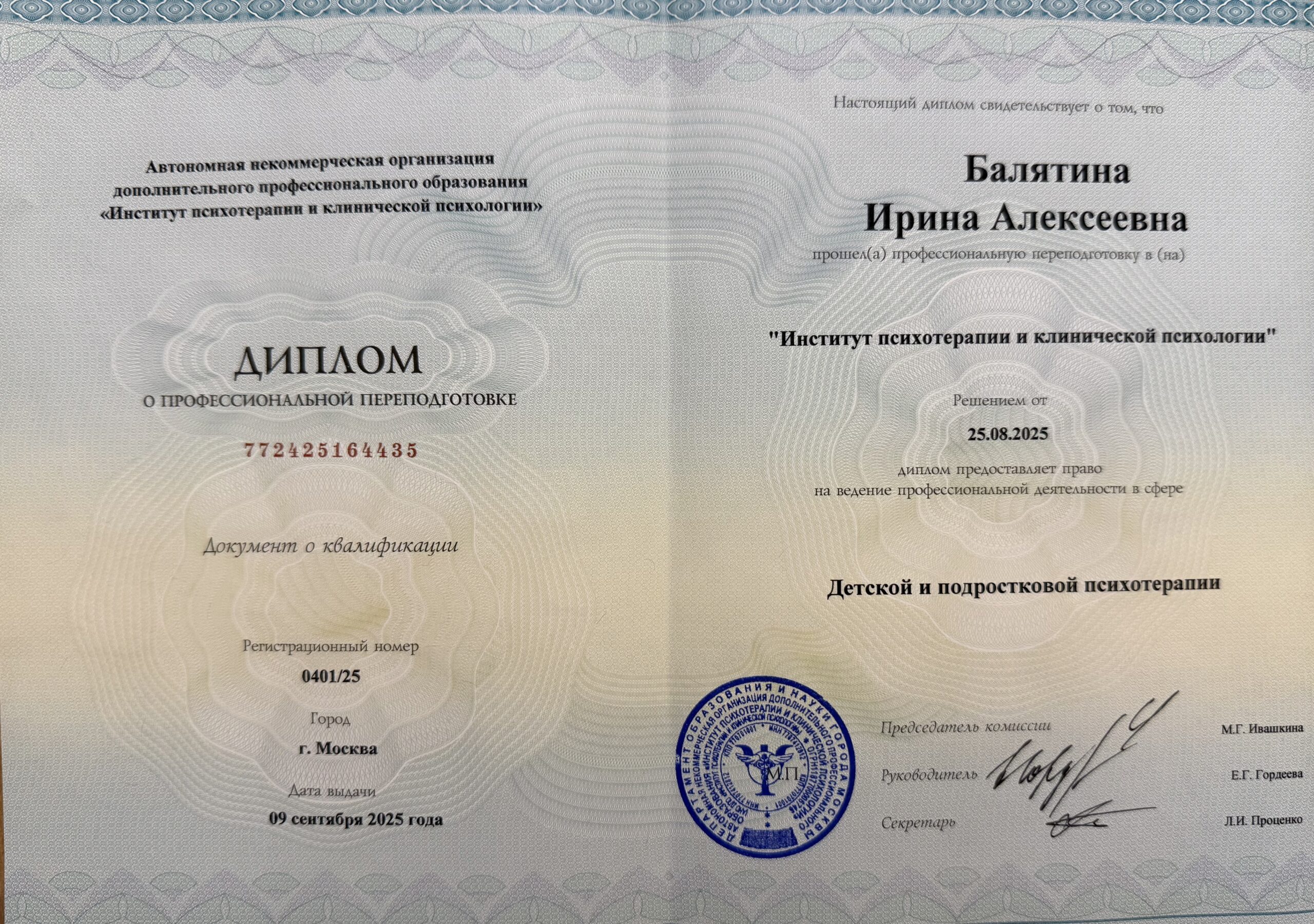 Дипломированный практикующий психолог в интегративном подходе.