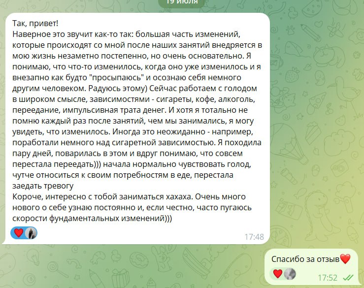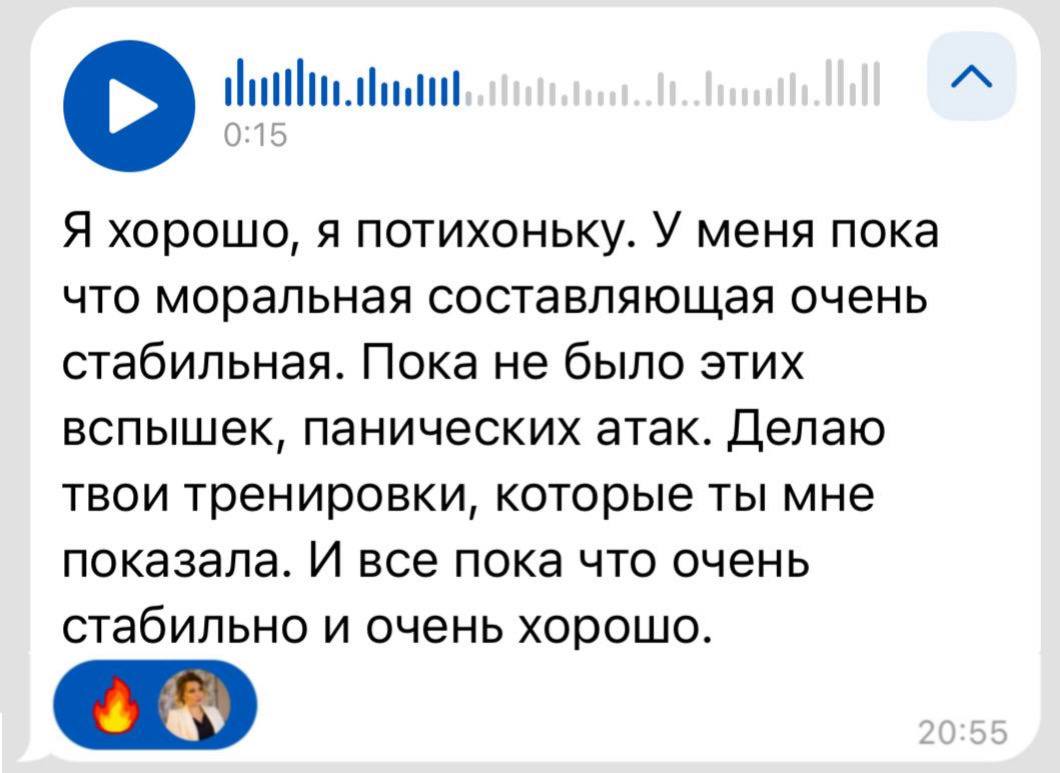 3️⃣ Фиксация результата: уже после первой сессии становится легче. И мы будем продолжать фиксировать на каждой встрече.