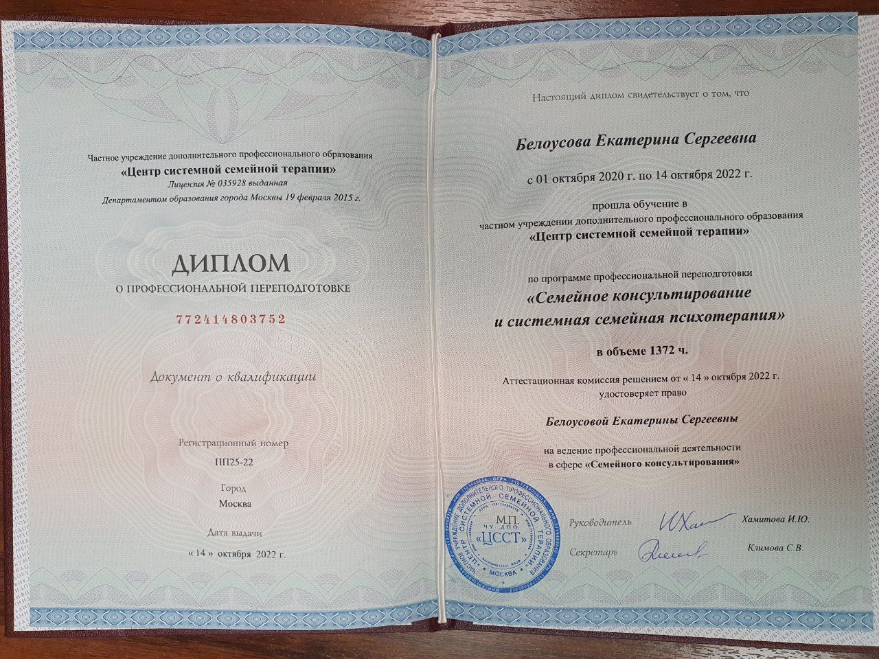 Белоусова Екатерина Сергеевна