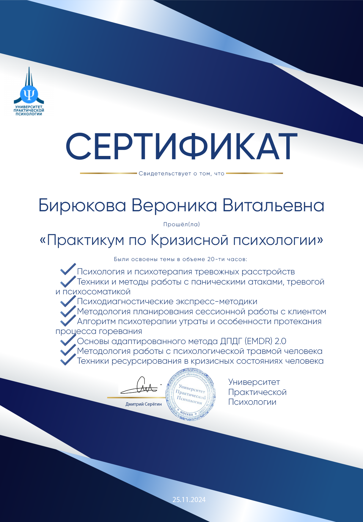 ✅ Работаю под руководством опытных супервизоров, непрерывно обучаюсь. При необходимости, работаю в тандеме с психиатром и врачами других специализаций.