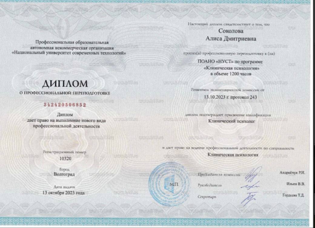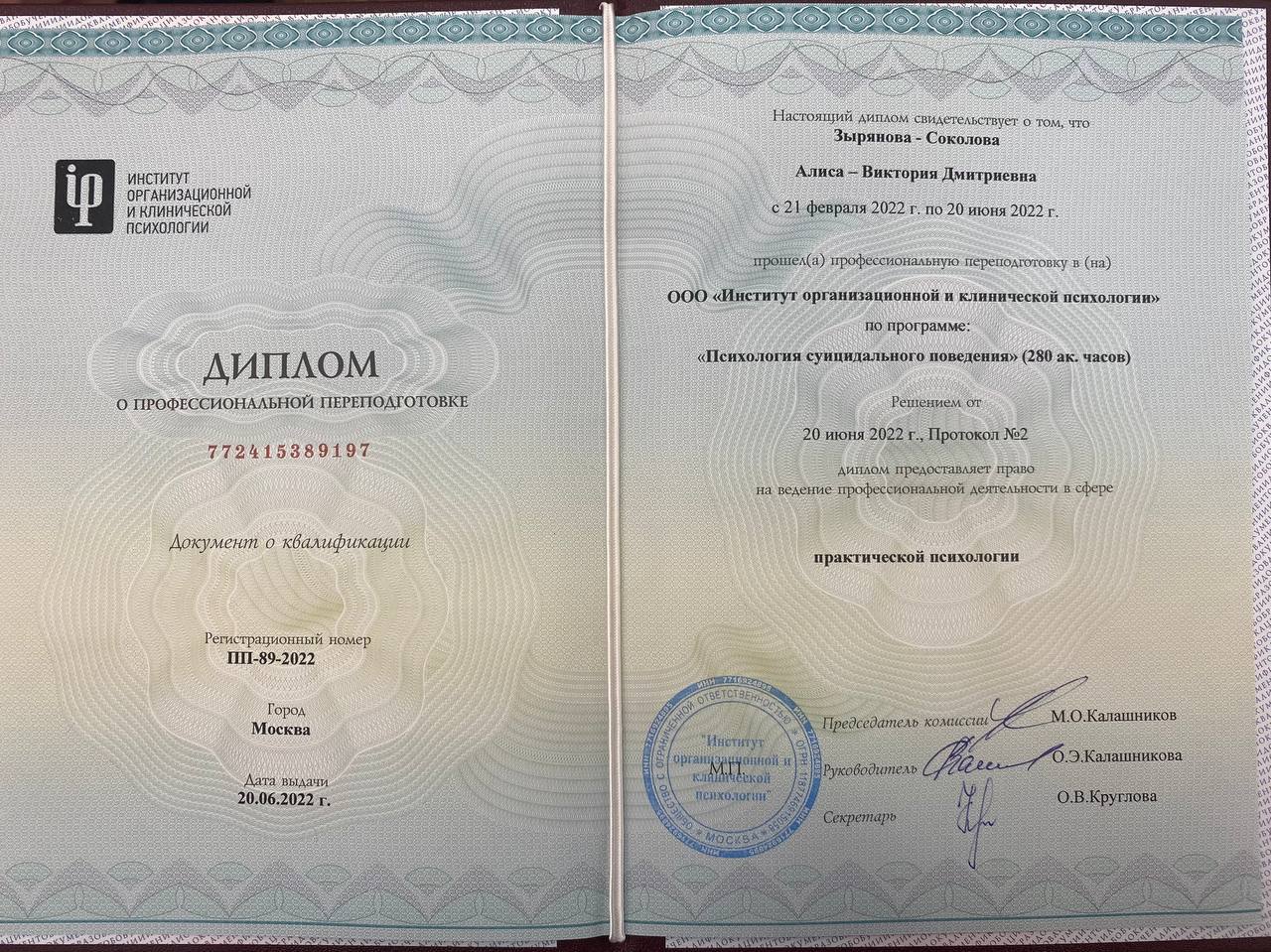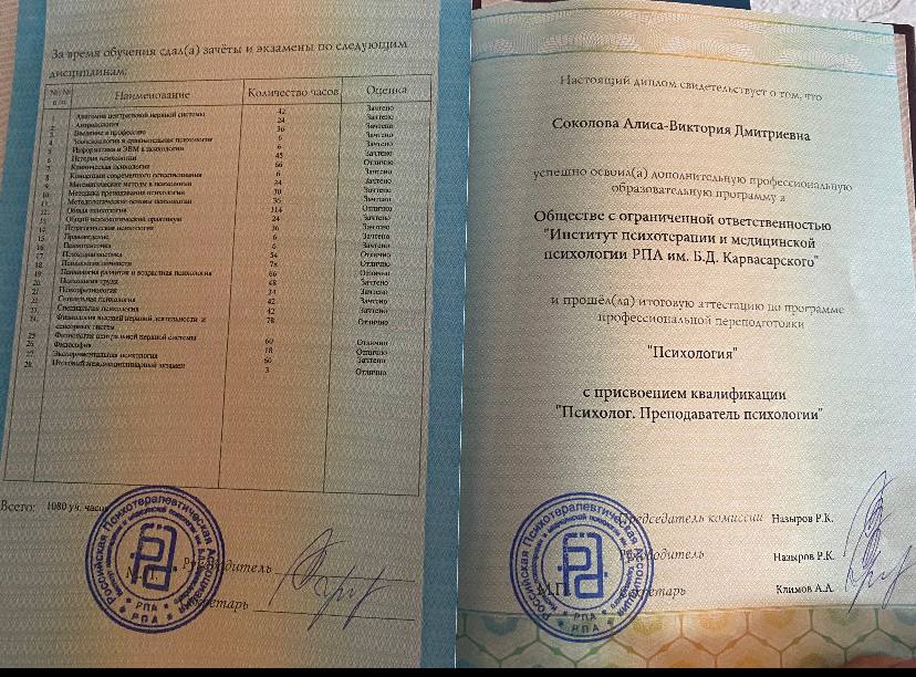 Мой профессиональный путь начался не с психологии, а с юридического факультета. Именно там я открыла для себя мир юридической психологии, который стал мостиком в профессию. Параллельно я пошла учиться на психолога, а позже, стремясь к целостному пониманию биологических основ психики, я поступила в медицинский институт, где обучаюсь на врача- психиатра.