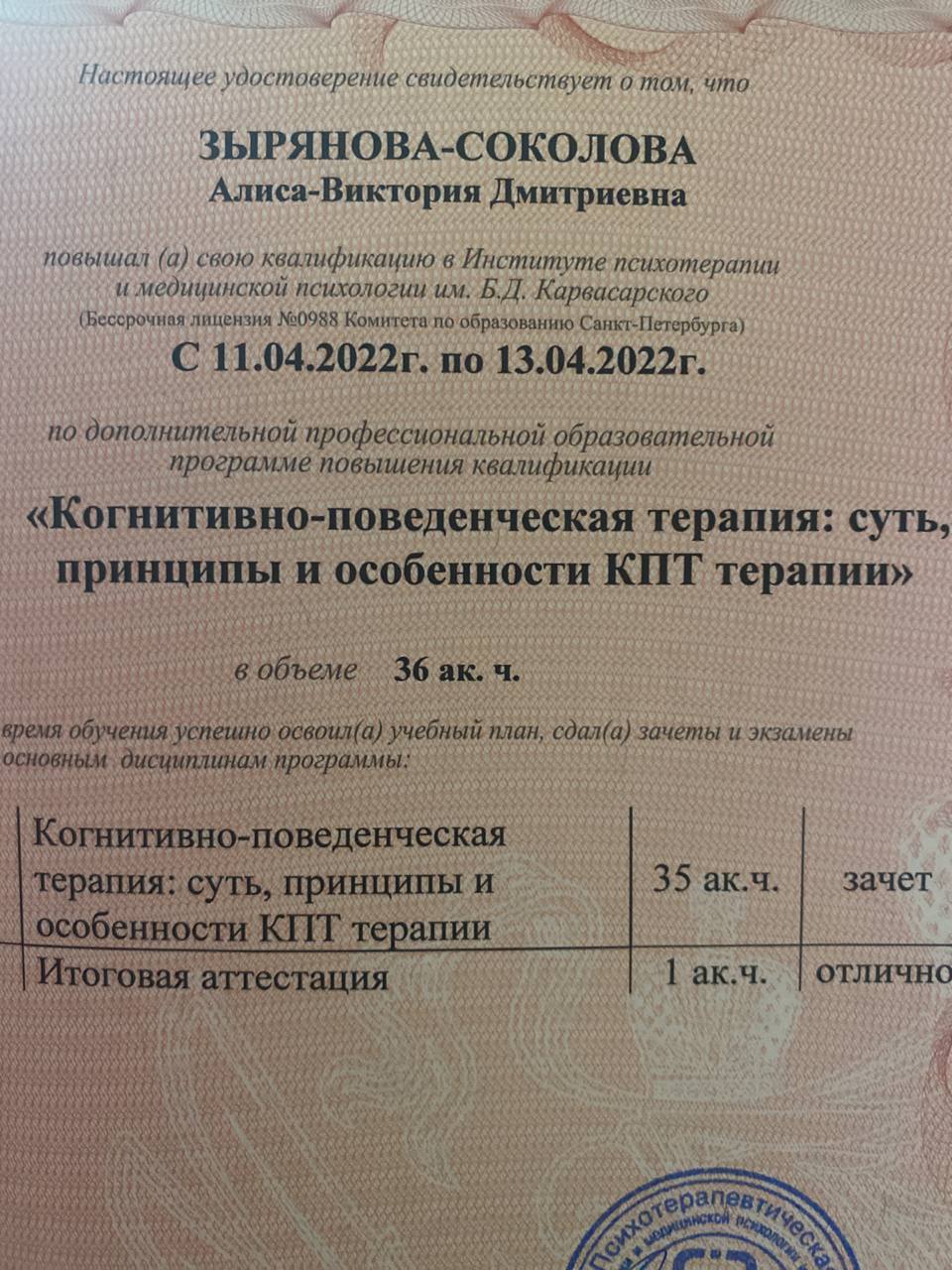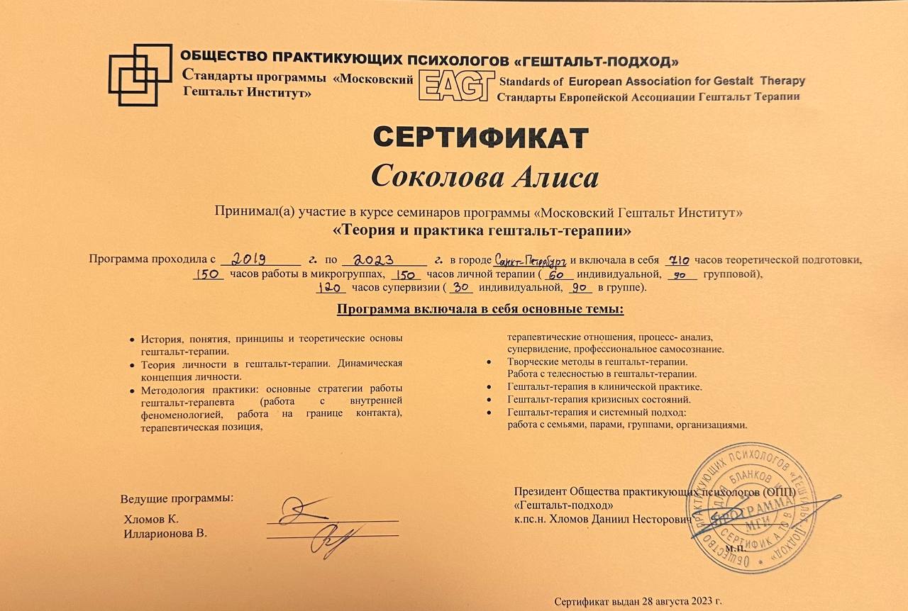 Здравствуйте. Меня зовут Алиса, я гештальт-терапевт и клинический психолог.