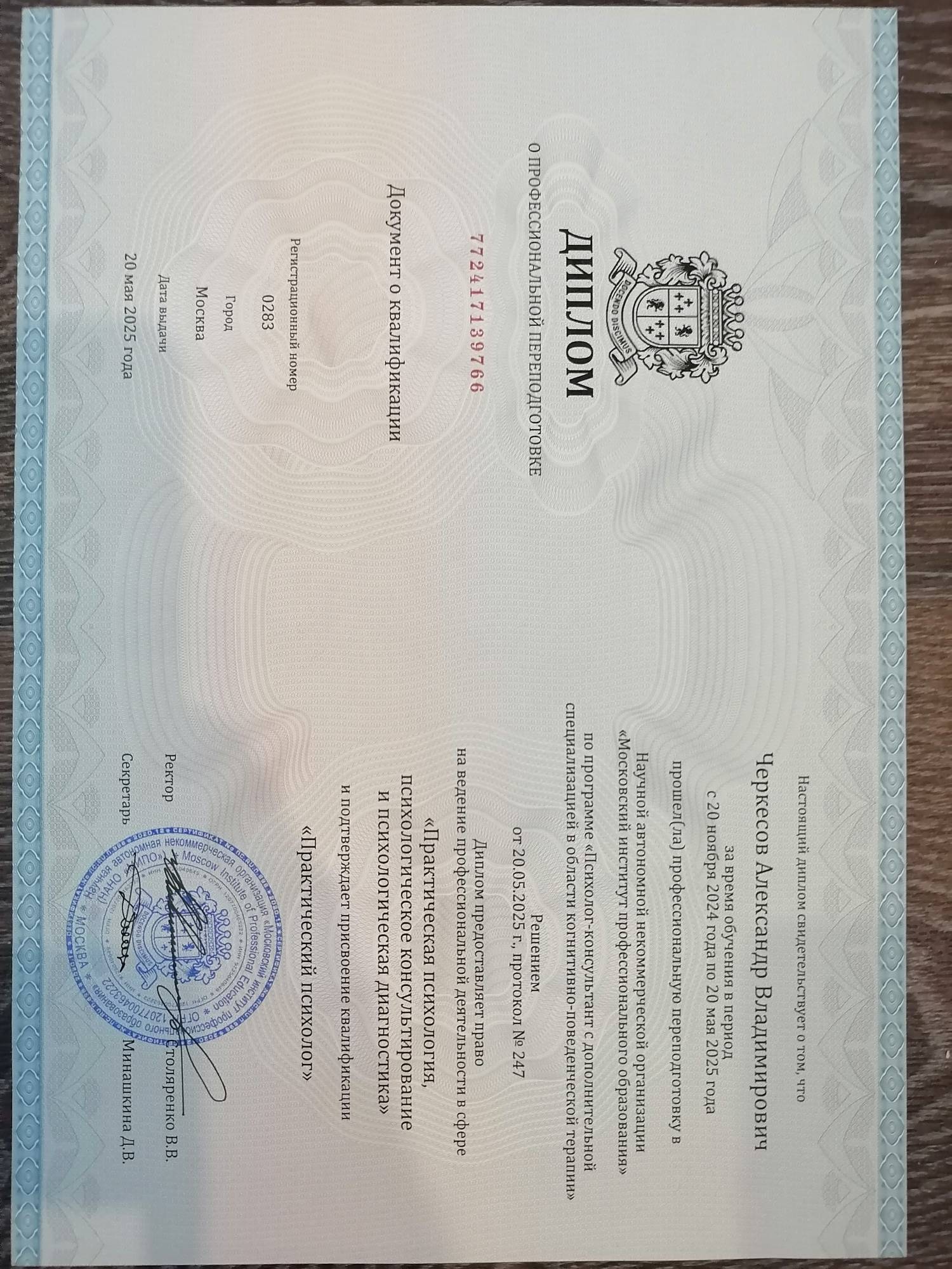 Я — Черкесов Александр, психолог, когнитивно-поведенческий терапевт. Специализируюсь на работе с тревогой, беспокойством, социальной тревожностью, сниженным настроением, проблемами с самооценкой, самокритикой. В своей практической работе использую когнитивно-поведенческую терапию. Опираюсь на научно-доказанные методы консультирования.