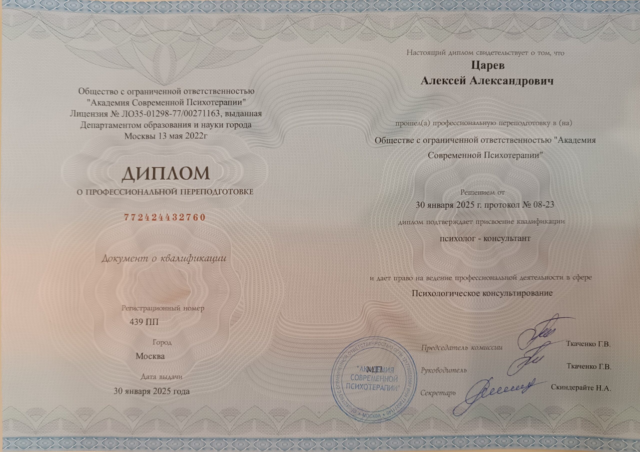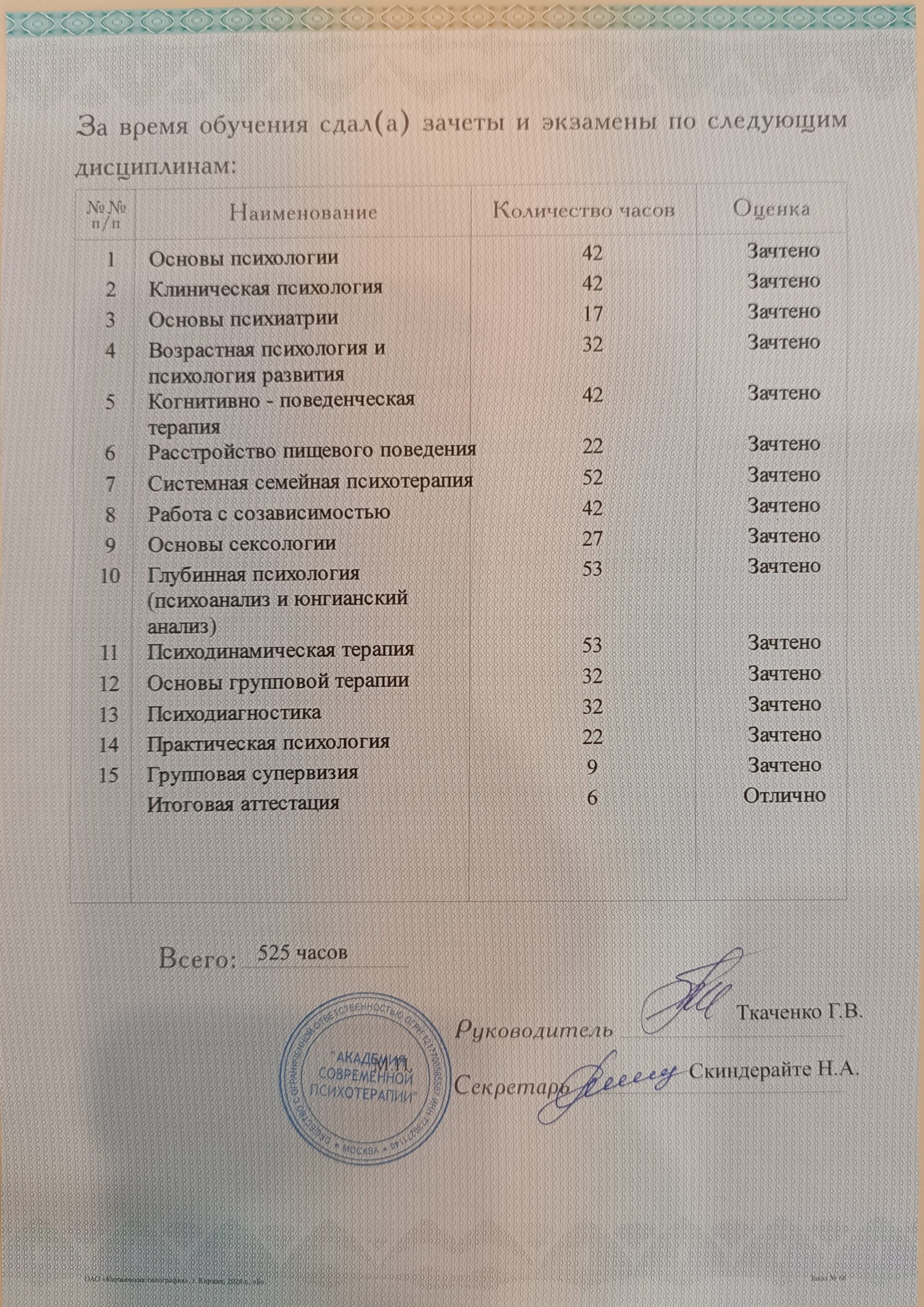 Методы работы:EMDR (ДПДГ) Арт-терапия Гештальт-терапия Интегративный (смешанный) подход Когнитивно-поведенческая (КПТ) Провокативная психотерапия Психодрама Системная семейная психотерапия телесно ориентированная терапия