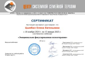 Методы работы:Гештальт-терапия Краткосрочная стратегическая терапия (КСТ) Понимающая психотерапия / клиент-центрированный подход Психодрама Системная семейная психотерапия Эмоционально-фокусированная терапия Эмоционально-фокусированная терапия (EFT)