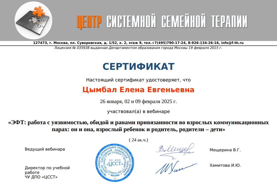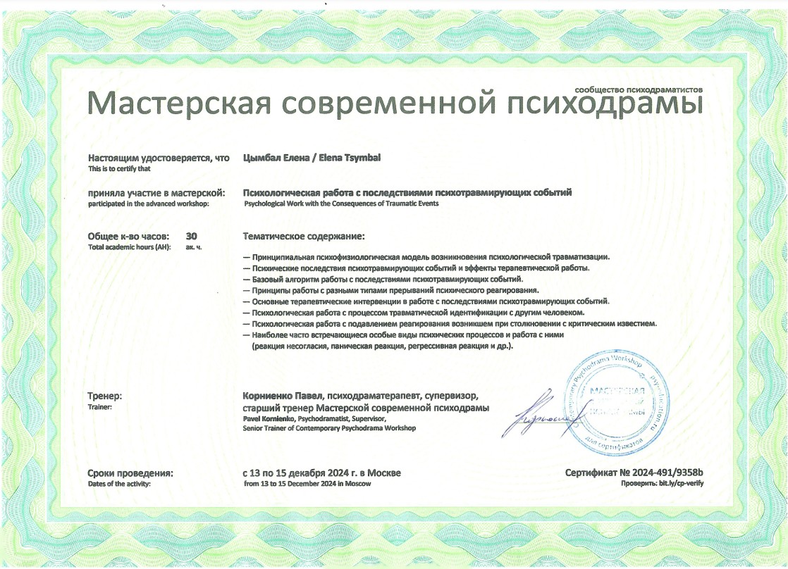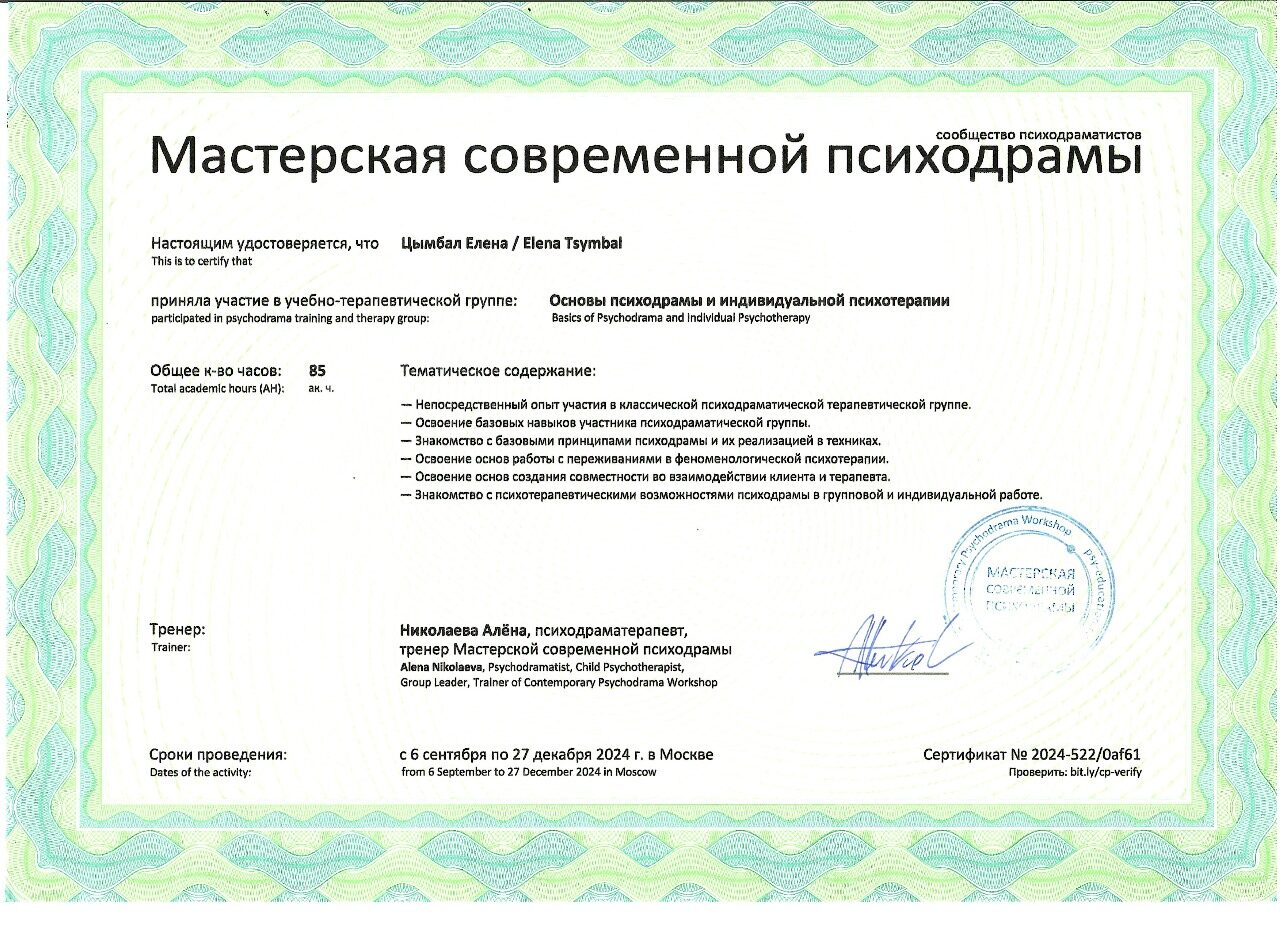 Я постоянно повышаю свою квалификацию, прохожу личную и групповую терапию, профессиональные семинары, обращаюсь к супервизору.