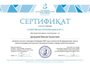 поведенческой психотерапии. Член ассоциации КПТ.
