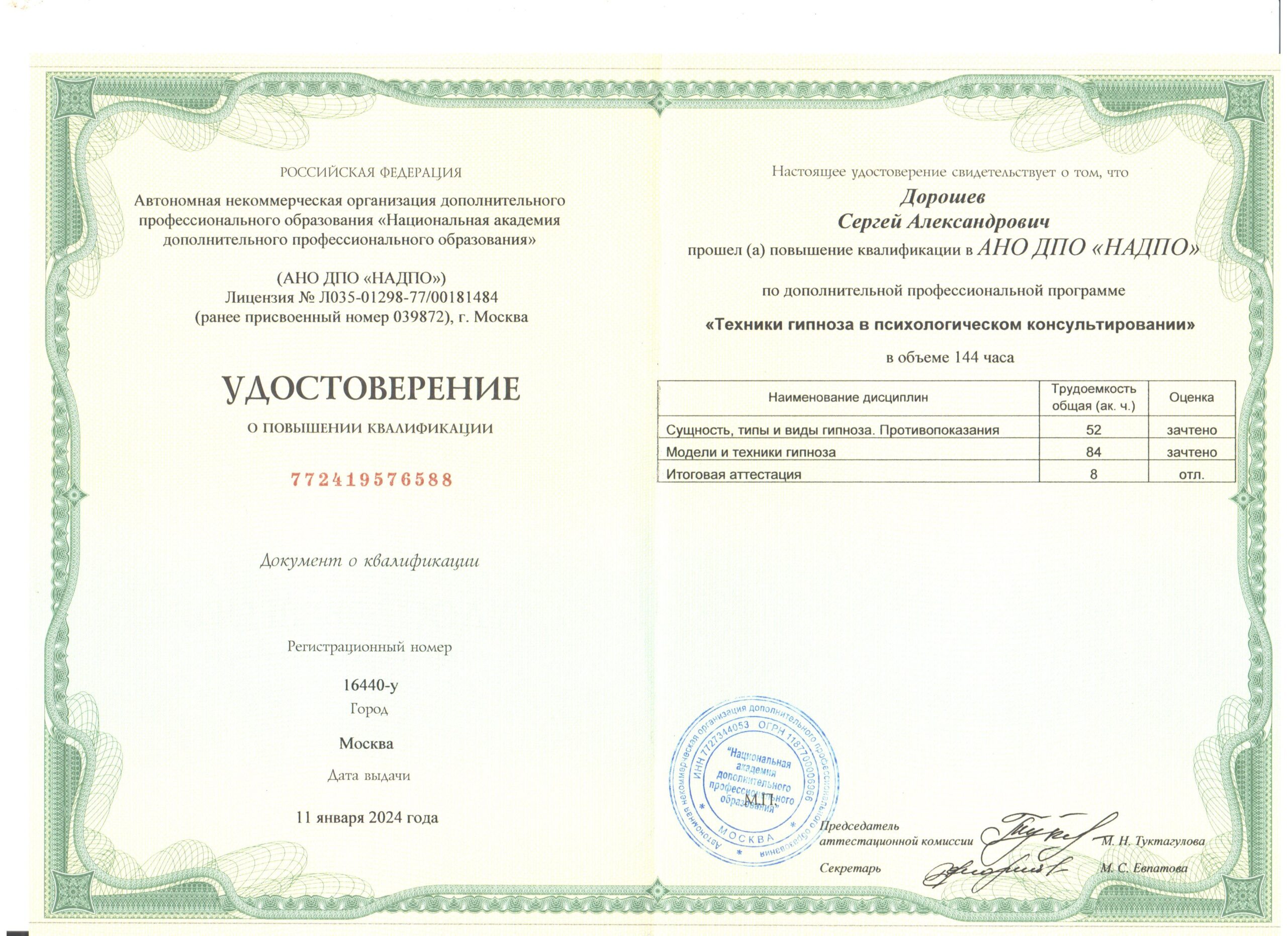 Напишите мне в WhatsApp/Telegram по номеру +7 928 255 79 12 или на сайт: http://doroshevsergei.ru/ со словом «ЗАПРОС». В кратком сообщении опишите свой главный запрос. Я лично отвечу вам в течение 24 часов