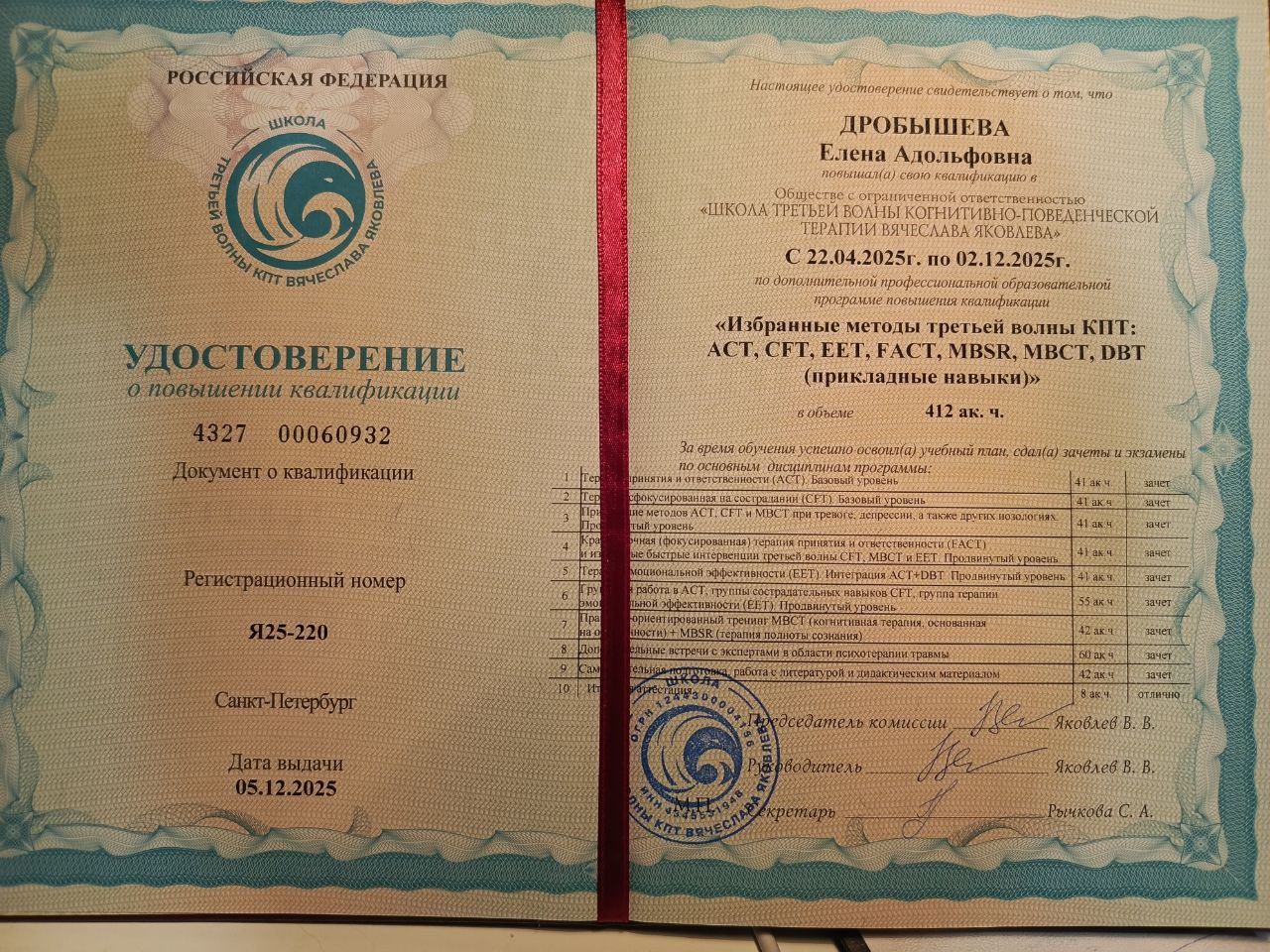 Применяю различные методы и техники (ACT, FACT, CFT, EET, MBCT, MBSR, гештальт, МАК-техники, коучинг и др.).