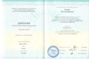 Подтверждённые дипломы по психологии:диплом о переподготовке (>1000 часов)