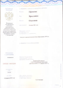 Получила диплом клинического психолога в УРФУ, который входит в 10ку лучших вузов России по версии Форбс.