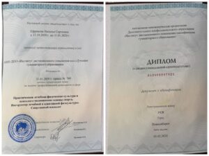 Дополнительное образование: Спортивный психолог-реабилитолог, коуч ICU. Регулярно повышаю квалификацию.