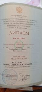 Подтверждённые дипломы по психологии:диплом о высшем образовании
