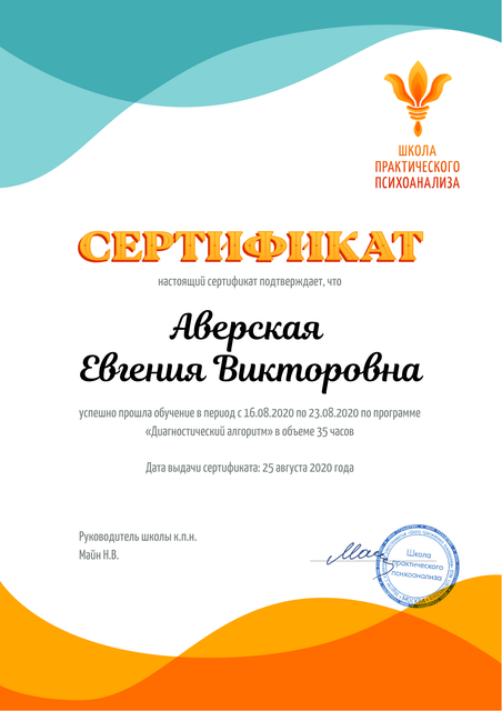 3. "Диагностический алгоритм" от Школы практического психоанализа Н.В. Майн, 35 ак.ч.