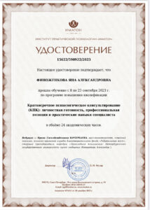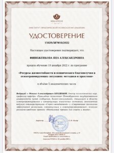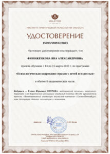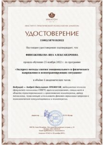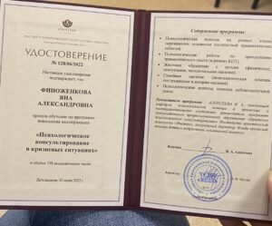 Я дипломированный кризисный психолог (окончила факультет психологии СПбГУ), в данный момент прохожу переподготовку на клинического психолога.