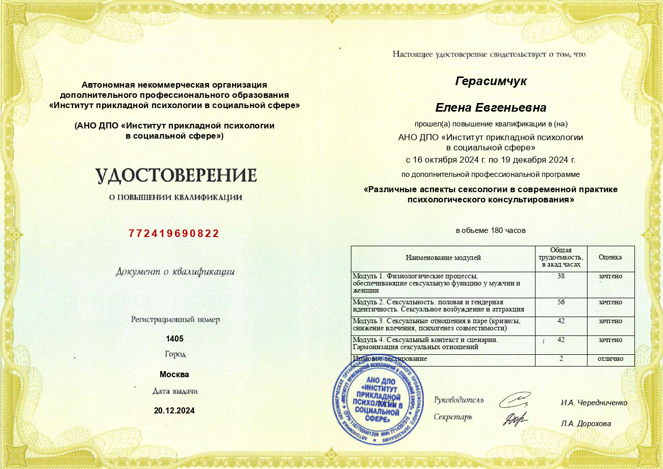 Рада приветствовать вас! Я психолог-психотерапевт, сексолог.