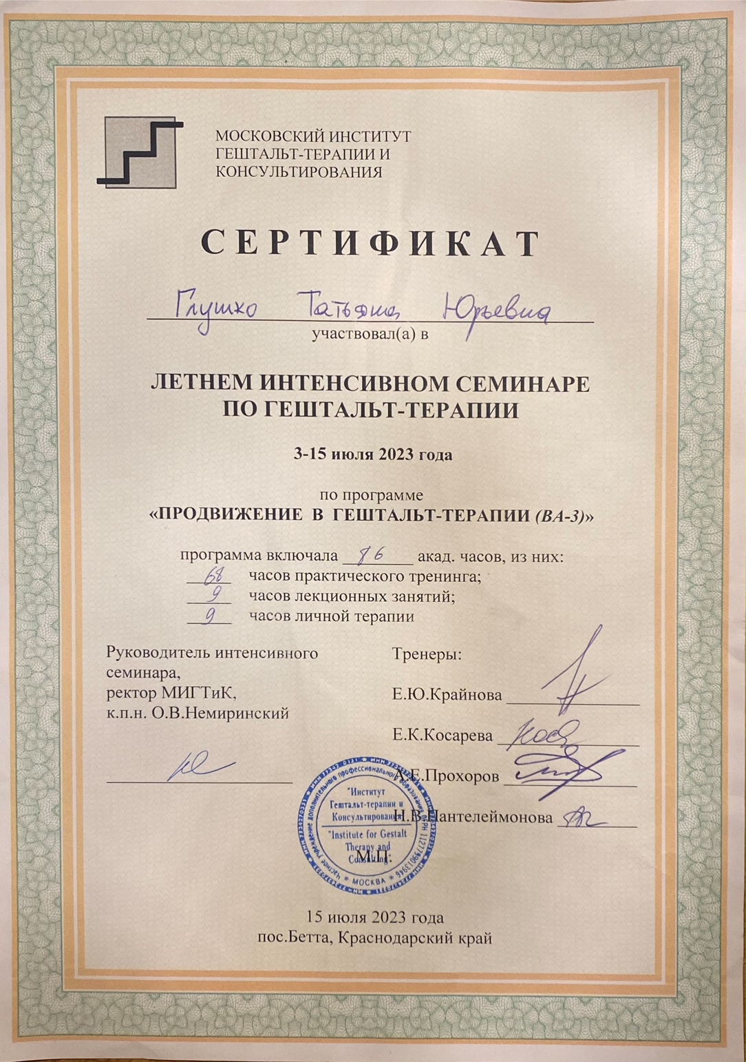Психолог, гештальт-терапевт, 40 летС кем работает специалист: взрослые (мужчины и женщины)
