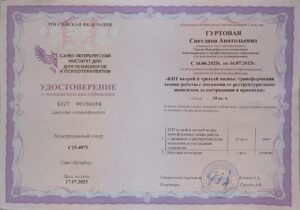 Психотерапевтический метод:Интегративный (смешанный) подход Когнитивно-поведенческая психотерапия (КПТ)