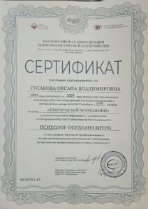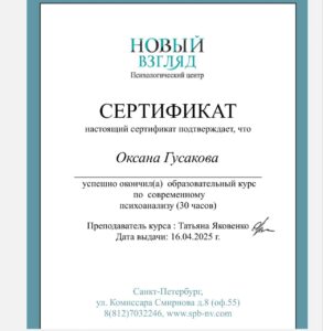 «Современный психоанализ» по методике Нью-Йоркского института современного психоанализа в течении 2х лет