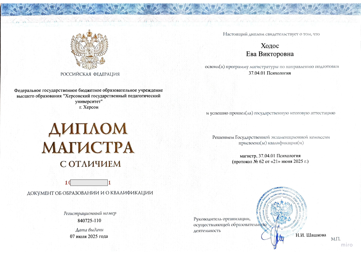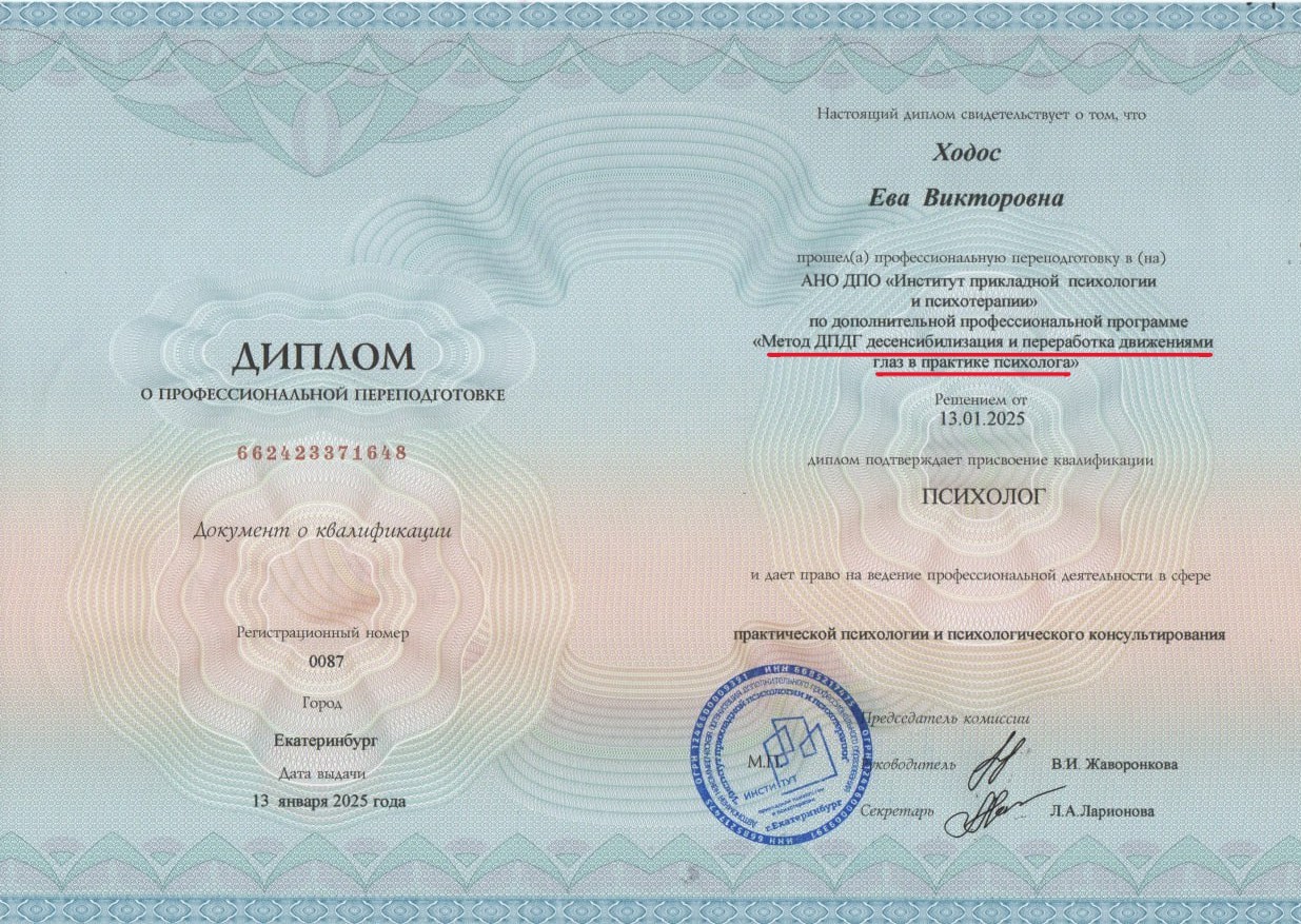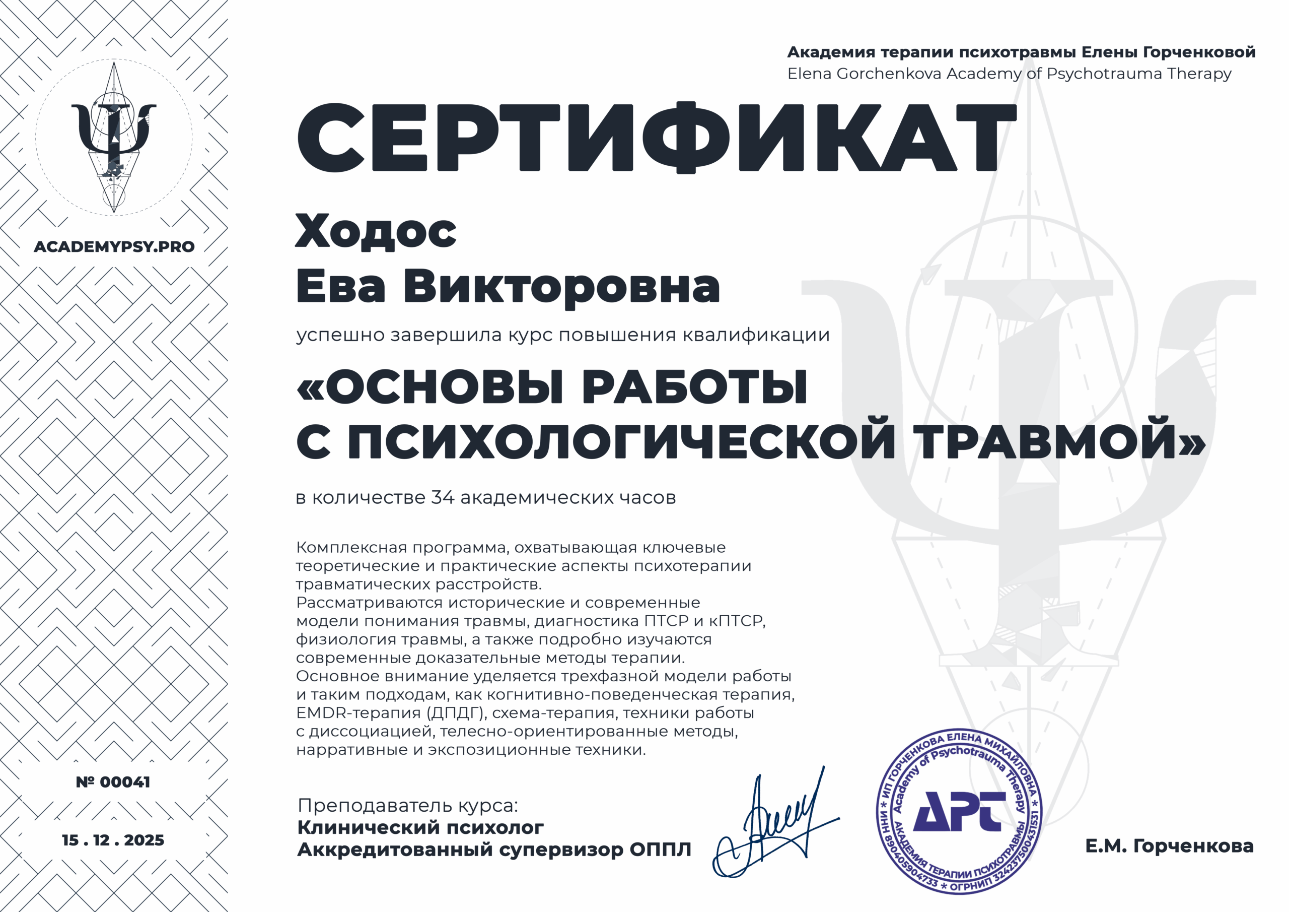 Более 150 часов супервизий и 100+ часов личной терапии.