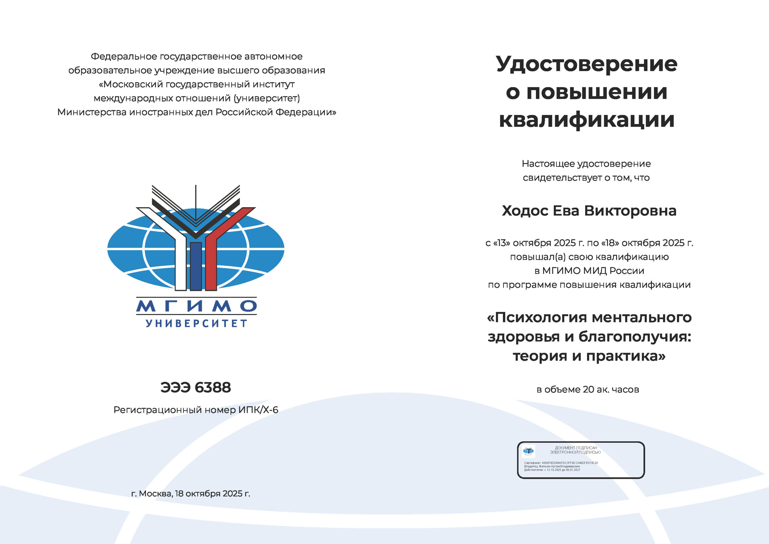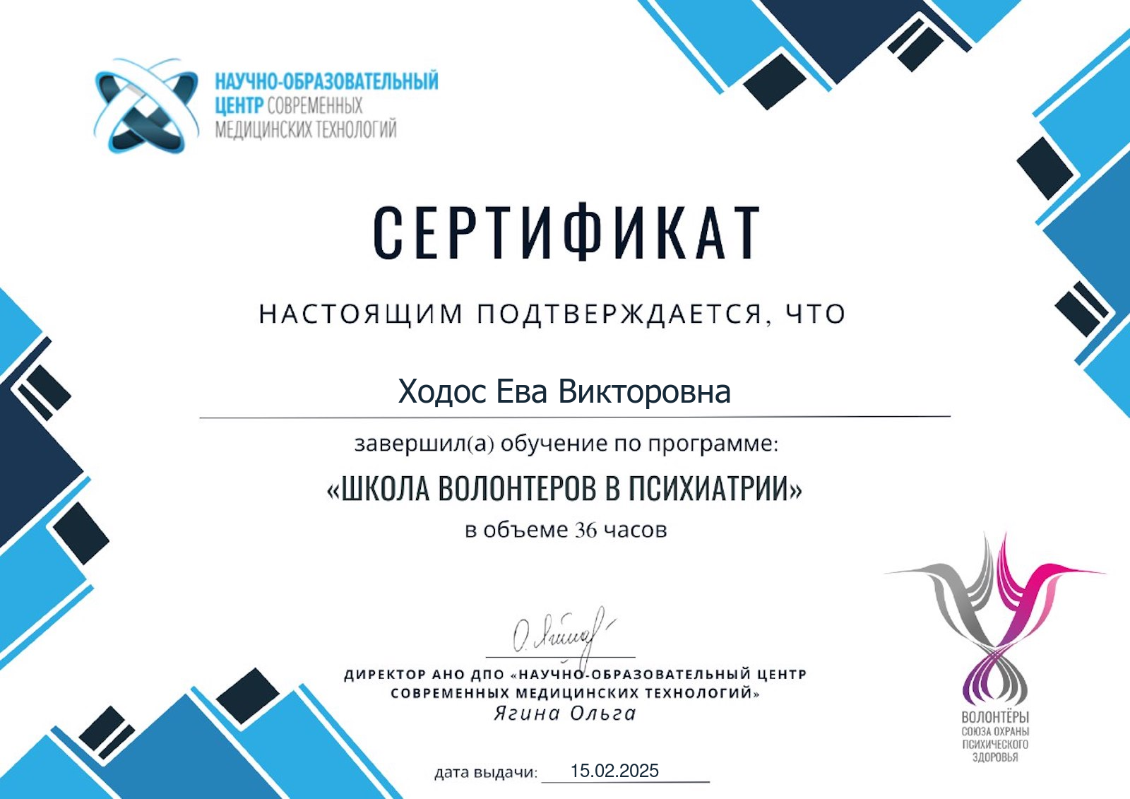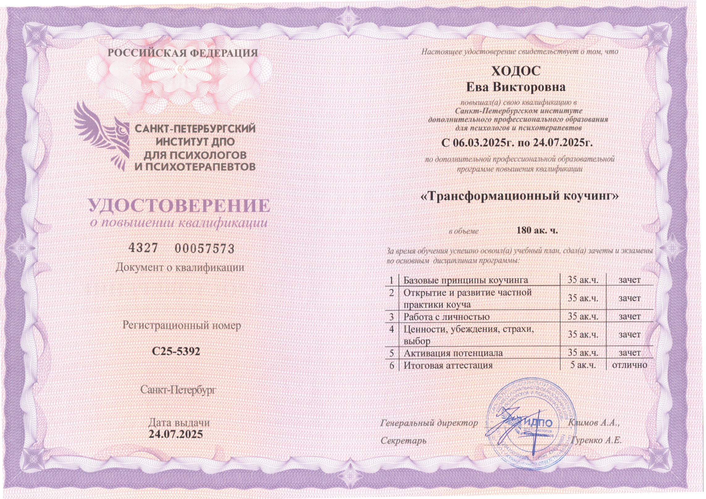 Более 150 часов супервизий и 100+ часов личной терапии.