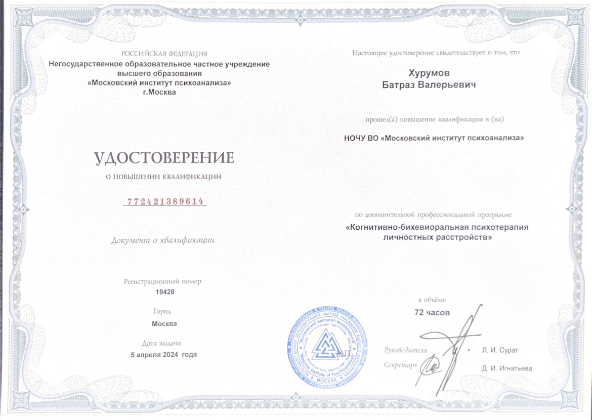 Методы работы:Когнитивно-поведенческая (КПТ) Схема-терапия