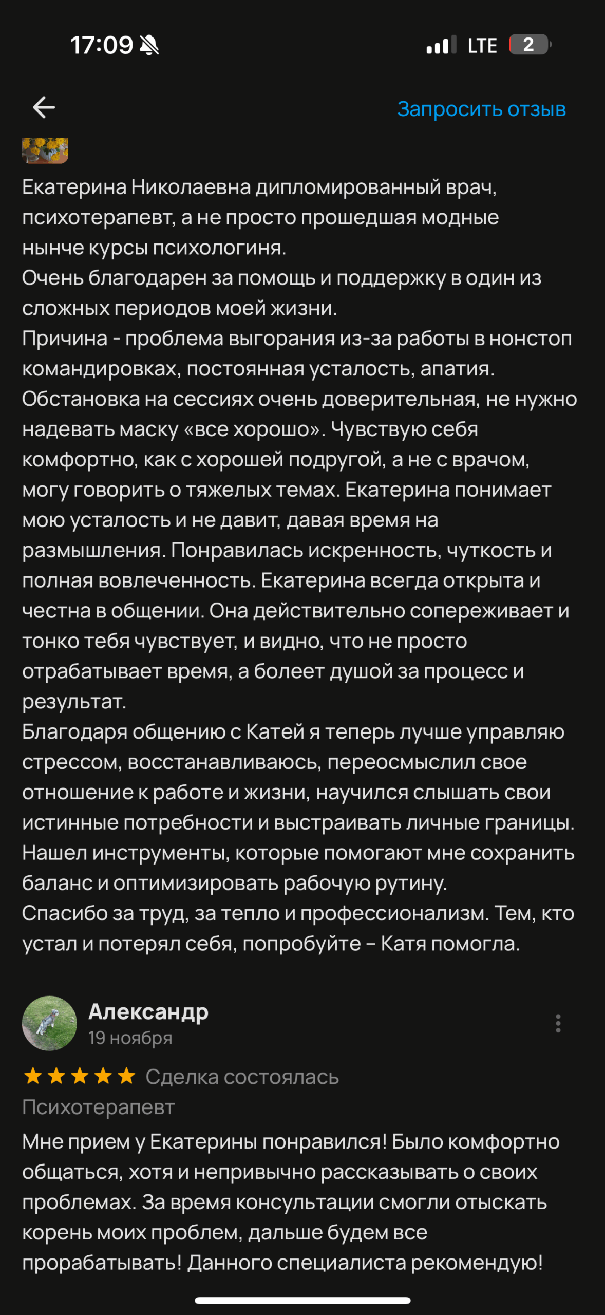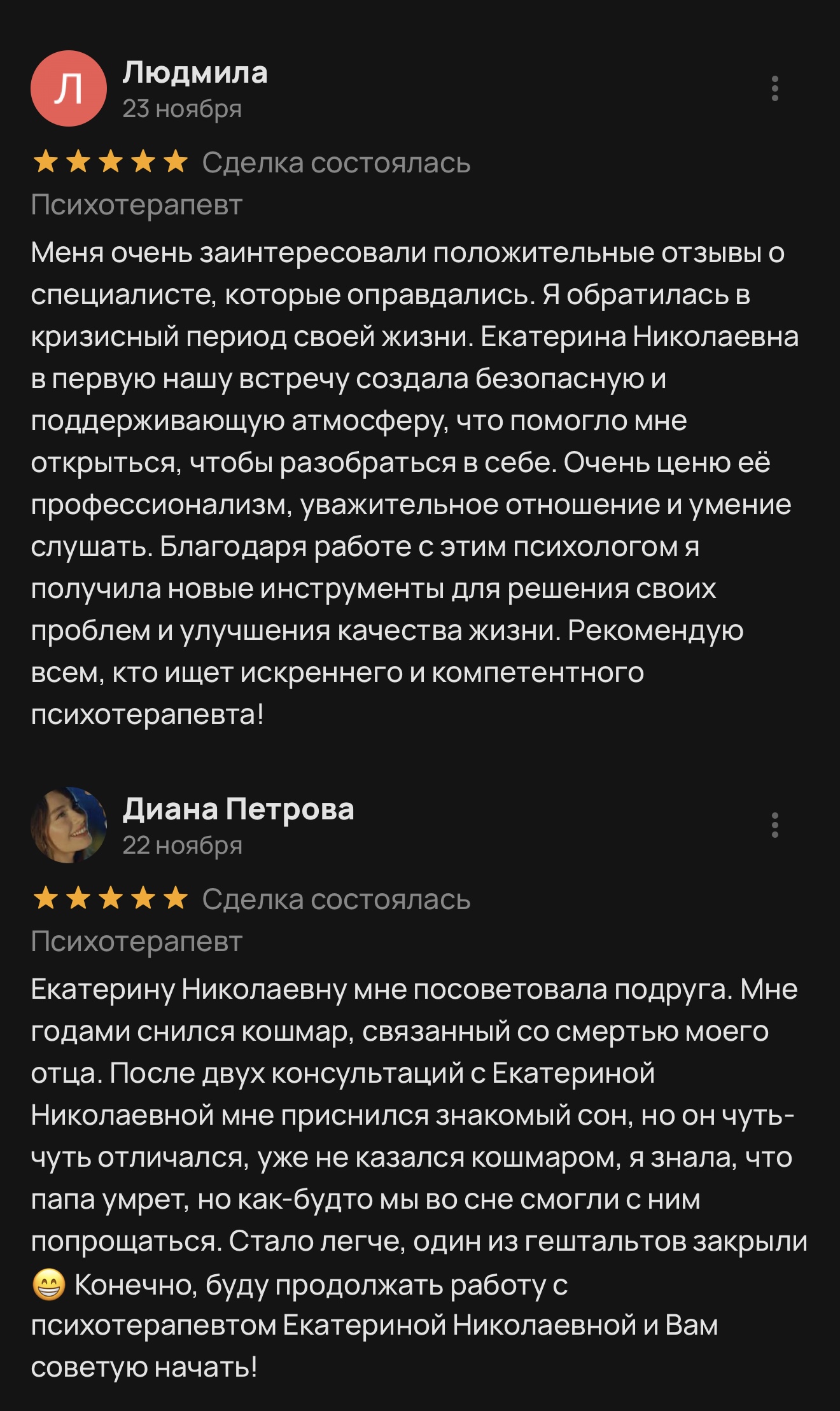 В течении 5 лет прохожу личную терапию в гештальт подходе. Изнутри знаю как меняет психотерапия и это помогает мне работать на очень глубоком уровне 💞