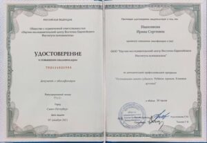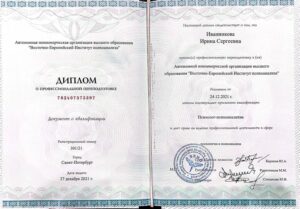 2019-2021гг. Восточно-Европейский Институт Психоанализа, Специализация «Психоанализ» (Санкт-Петербург)