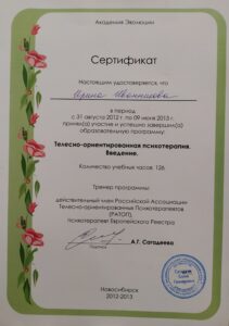 Постоянно участвую в различных обучающих программах по повышению квалификации, регулярно прохожу супервизирование у нескольких специалистов.