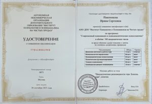 2024-2025гг. Институт Психологии и Психоанализа на Чистых прудах, Специализация «Современный психоанализ и психоаналитическая психосоматика» (Москва)