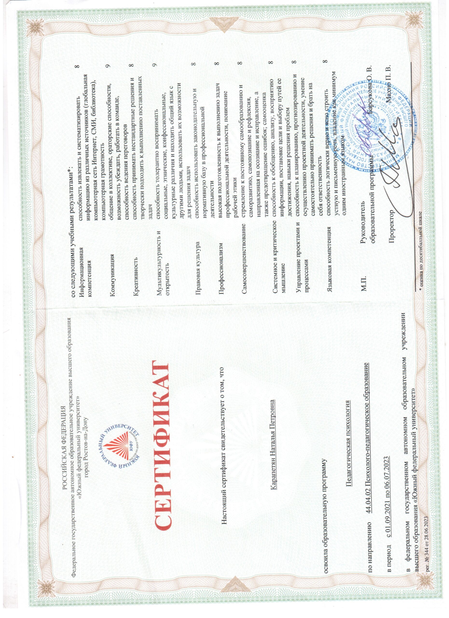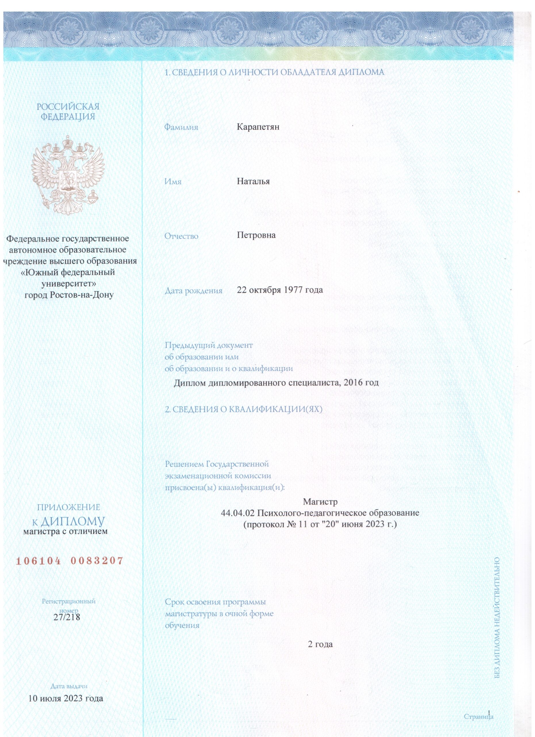 Принимает очно (город приёма):Ростов-на-Дону