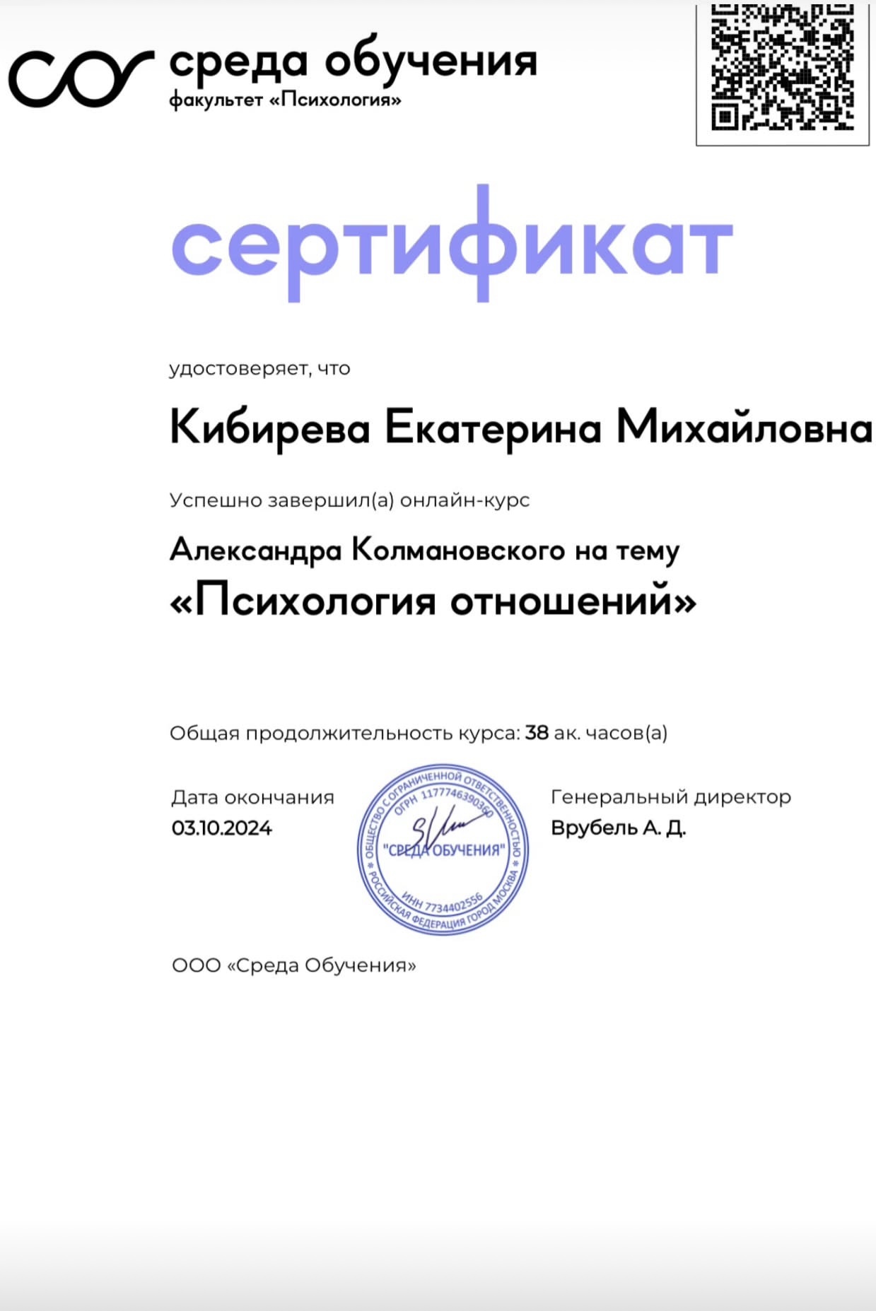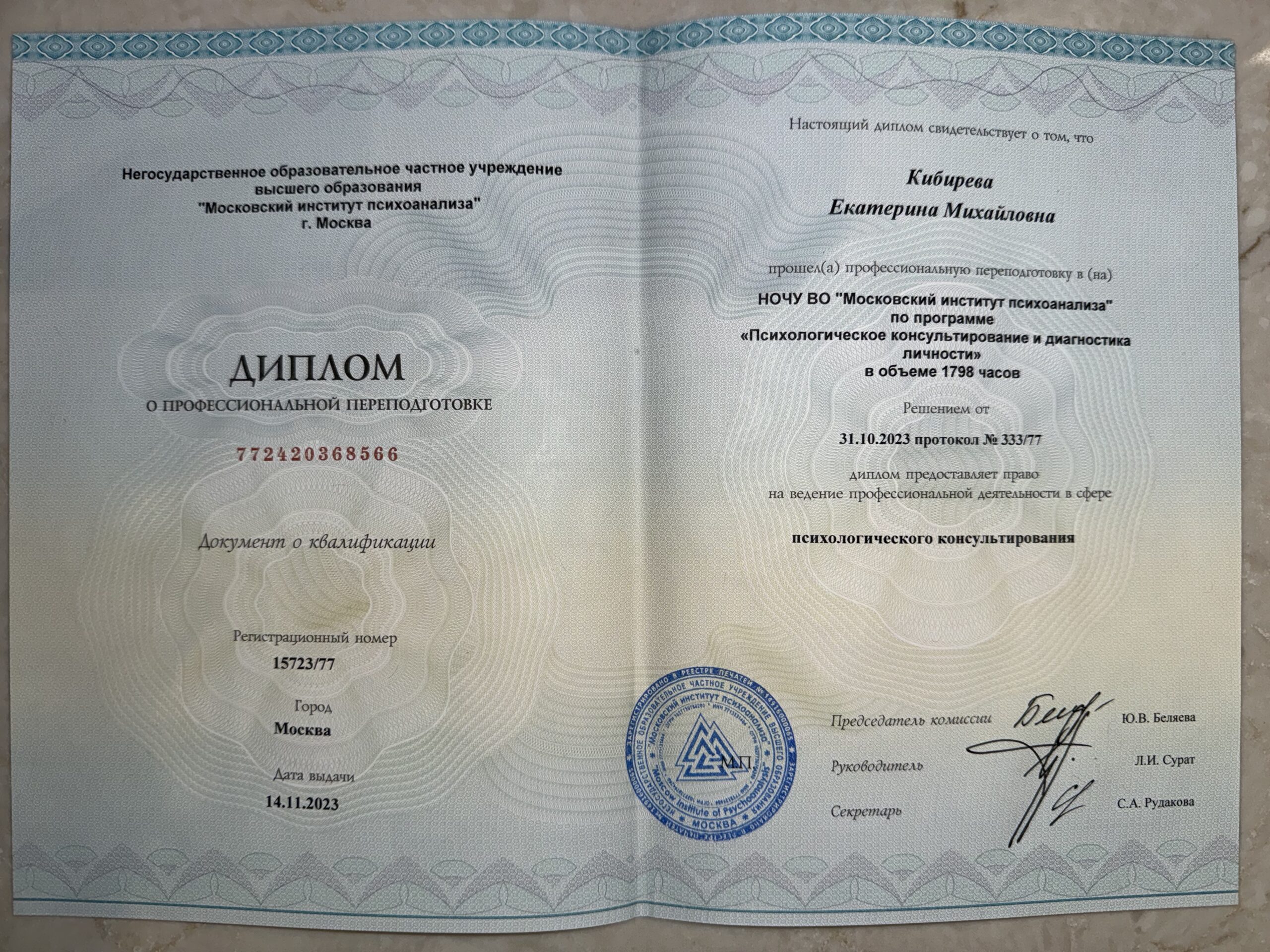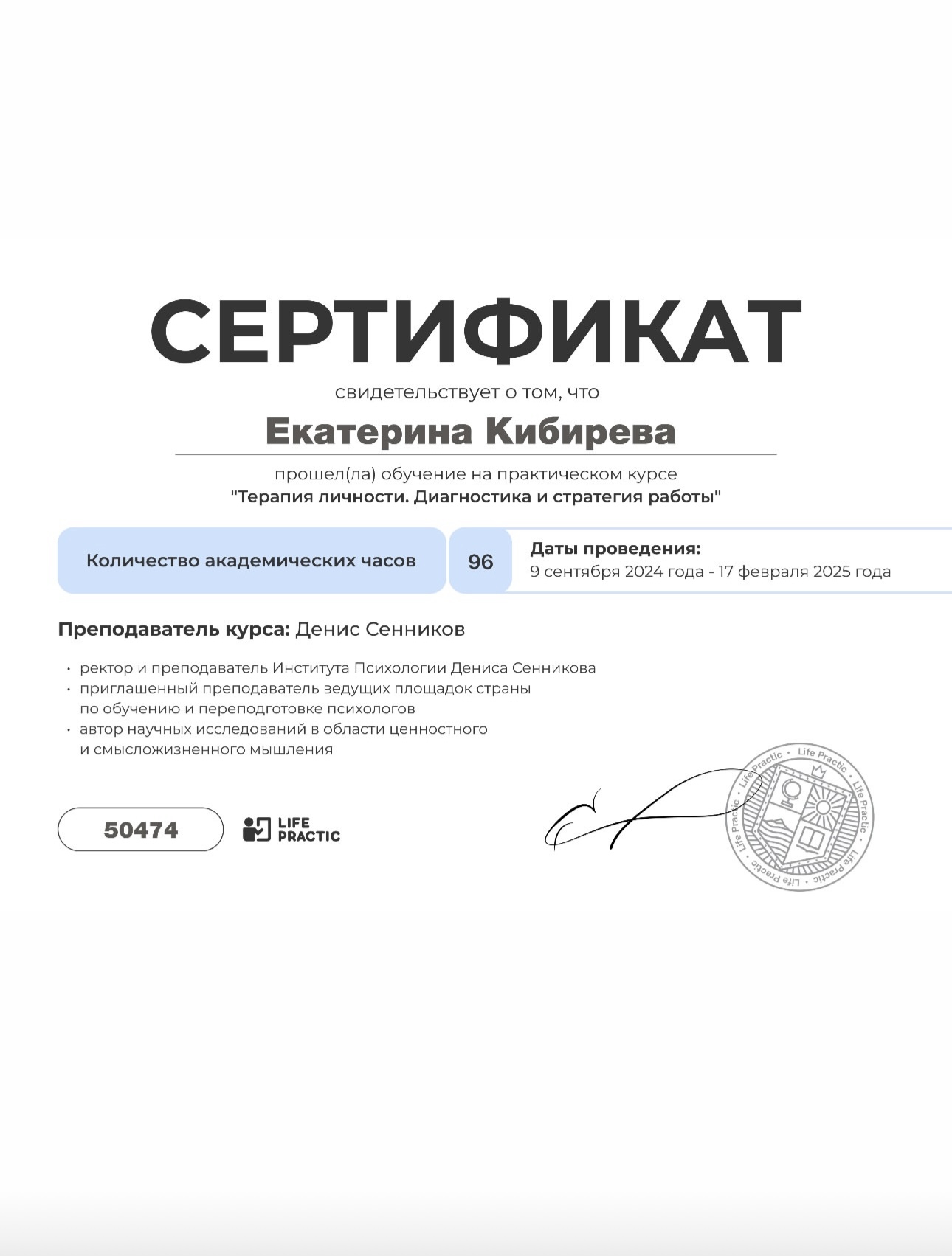 Здравствуйте! Меня зовут Екатерина Кибирева. Я дипломированный психолог-консультант и терапевт, работающий в краткосрочном подходе, ориентированном на решение(ОРКТ)