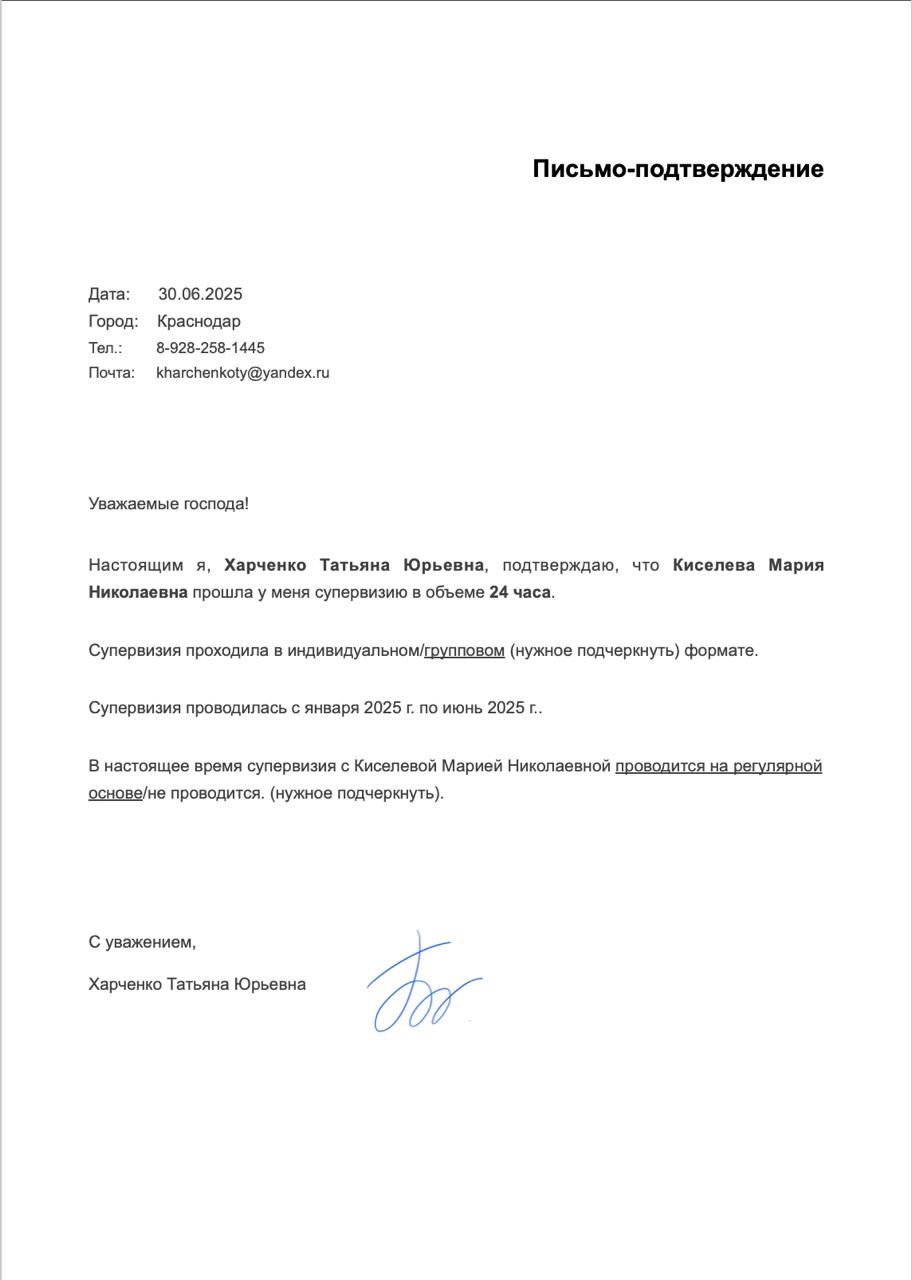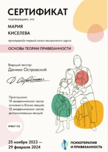 Я увлечена психологией с 2018 года, тогда же началось мое профессиональное развитие - сначала магистратура, потом подготовка в КПТ подходе. Большое внимание я уделяю самообразованию, личной терапии и супервизии. В работе ценю возможность содействовать внутренним переменам - через бережный и действенный контакт. Своими сильными чертами как специалиста считаю искренность, конгруэнтность, способность поддерживать доверительный контакт, приверженность проверенным, доказательным подходам и ответственность за соблюдение профессиональной этики. Мне доверяют и я отношусь к этому очень трепетно, бережно.