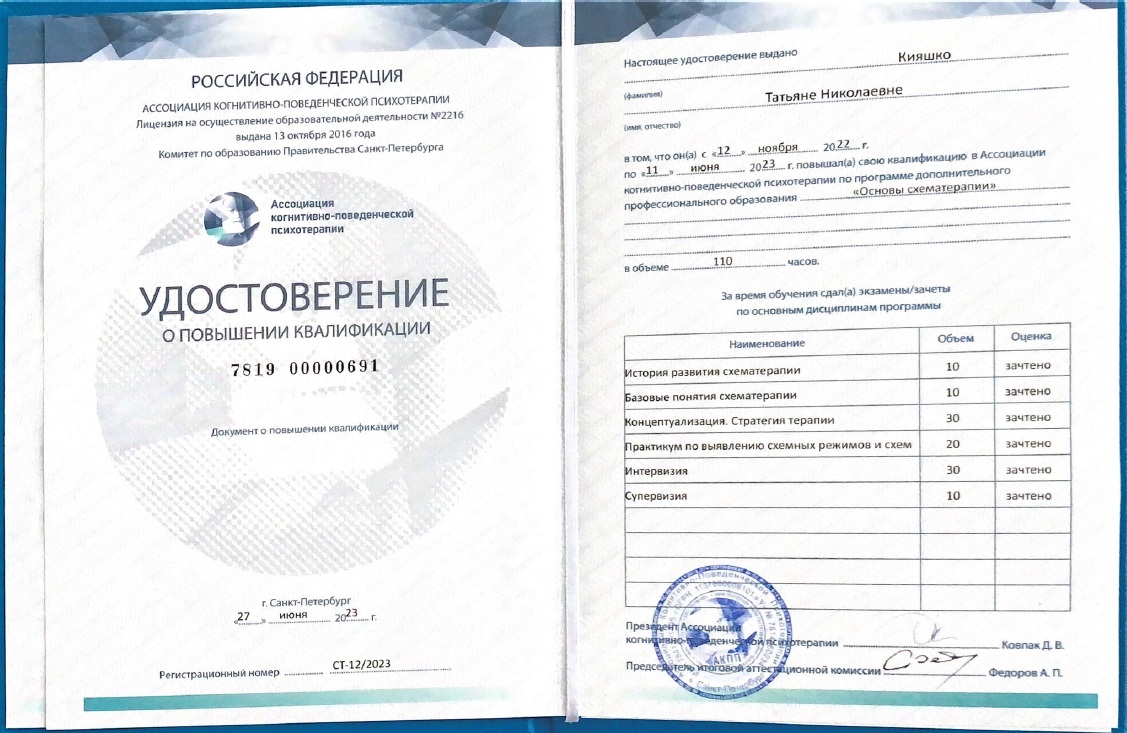 Регулярно прохожу супервизию по Схема-терапии у сертифицированного супервизора ISST.