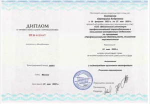 В 2022 году - повышение квалификации по семейной терапии. Семейные конфликты, Измены. Созависимые отношения.
