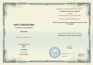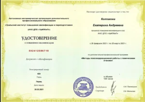 В 2021 году повышение квалификации по клинической психологии- Специалист по паническим атакам
