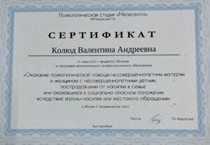 - работа в Комплексном Центре Социального Обслуживания Населения, работа с детьми которые остались без попечения родителей, а так же в этом центре активно ведется работа по восстановлению детско-родительских отношений в семьях, в которых нарушена взаимосвязь родитель-ребёнок