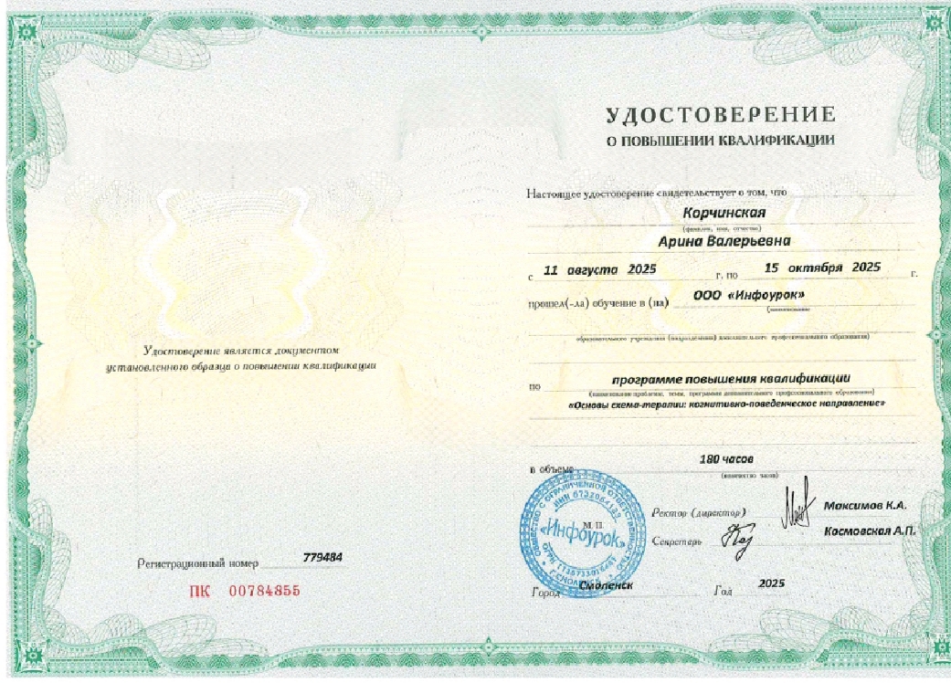 · Опыт, которому можно доверять: Я в психологии с 2015 года. За это время я провела сотни консультаций и видела, что методы, которые я использую, действительно работают. Я постоянно учусь (схема-терапия, работа с подростками и семьями, работа с метафорой и многое другое), чтобы предлагать вам самые эффективные решения.