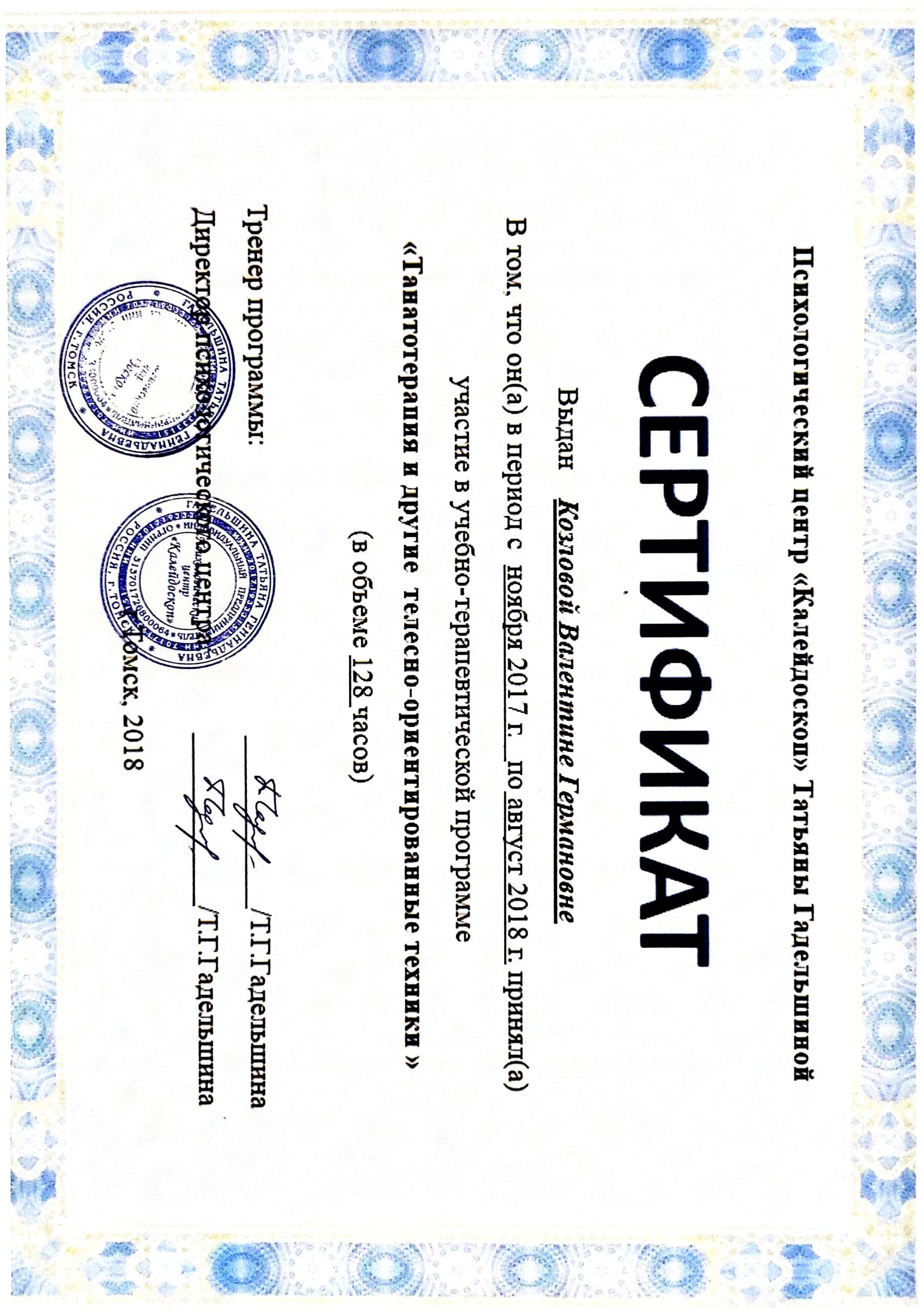 Здравсивуйте! Меня зовут Валентина, я являюсь психологом, гештальт-терапевтом и специалистом по телесно-ориентированной терапии
