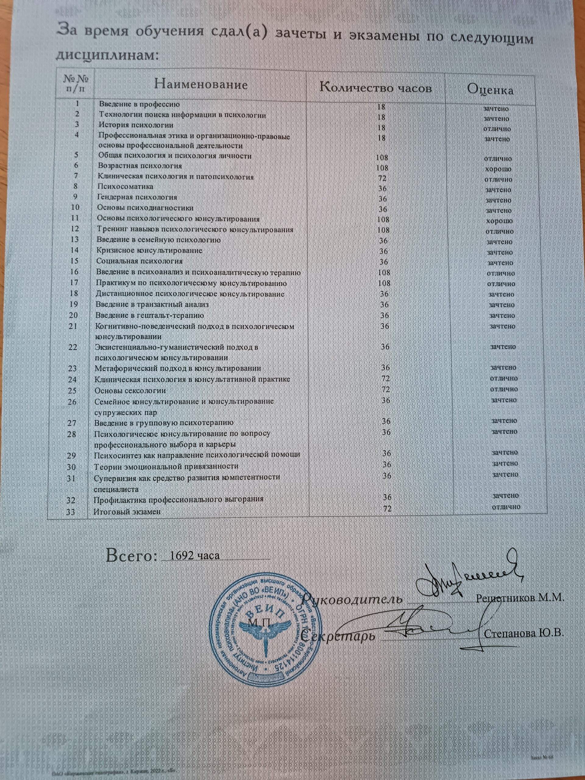 - Восточно-Европейский Институт психоанализа / специальность - психологическое консультрование (2024)
