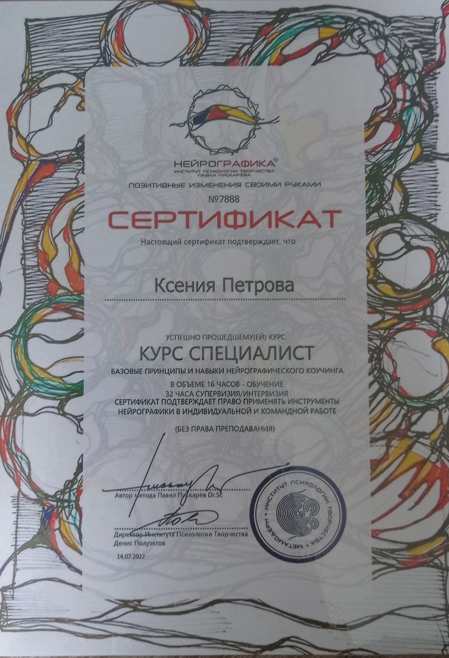 ✅Институт Психологии Творчества П. М. Пискарёва - Сертификат Специалиста Нейрографики (направление арт-терапии: работа с психикой через абстрактное рисование);